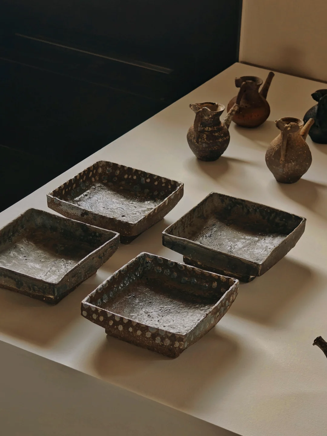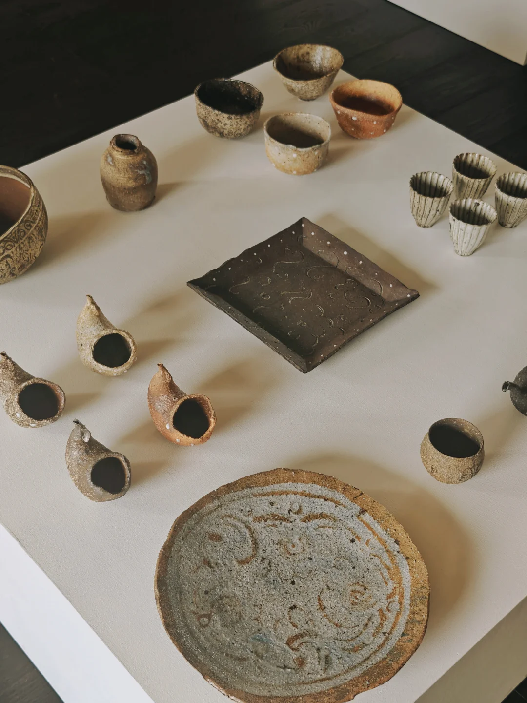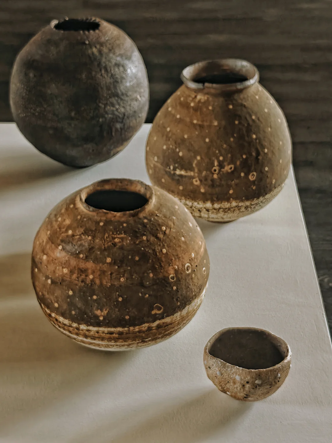 ?作品以“壶(tsubo)”为核心,介于日用器与雕塑之间,融入地、水、火、风元素,纹样多无意识自然涌现,兼具细腻感与力量感,如火山喷发后平静却有痕跡