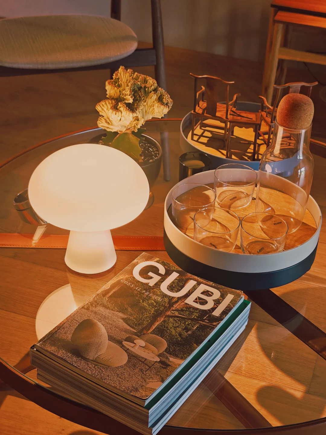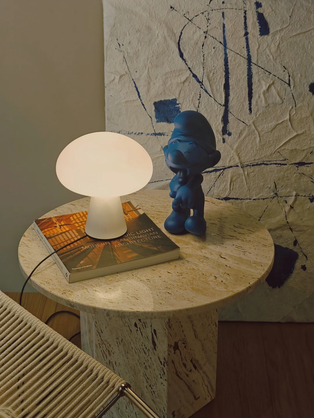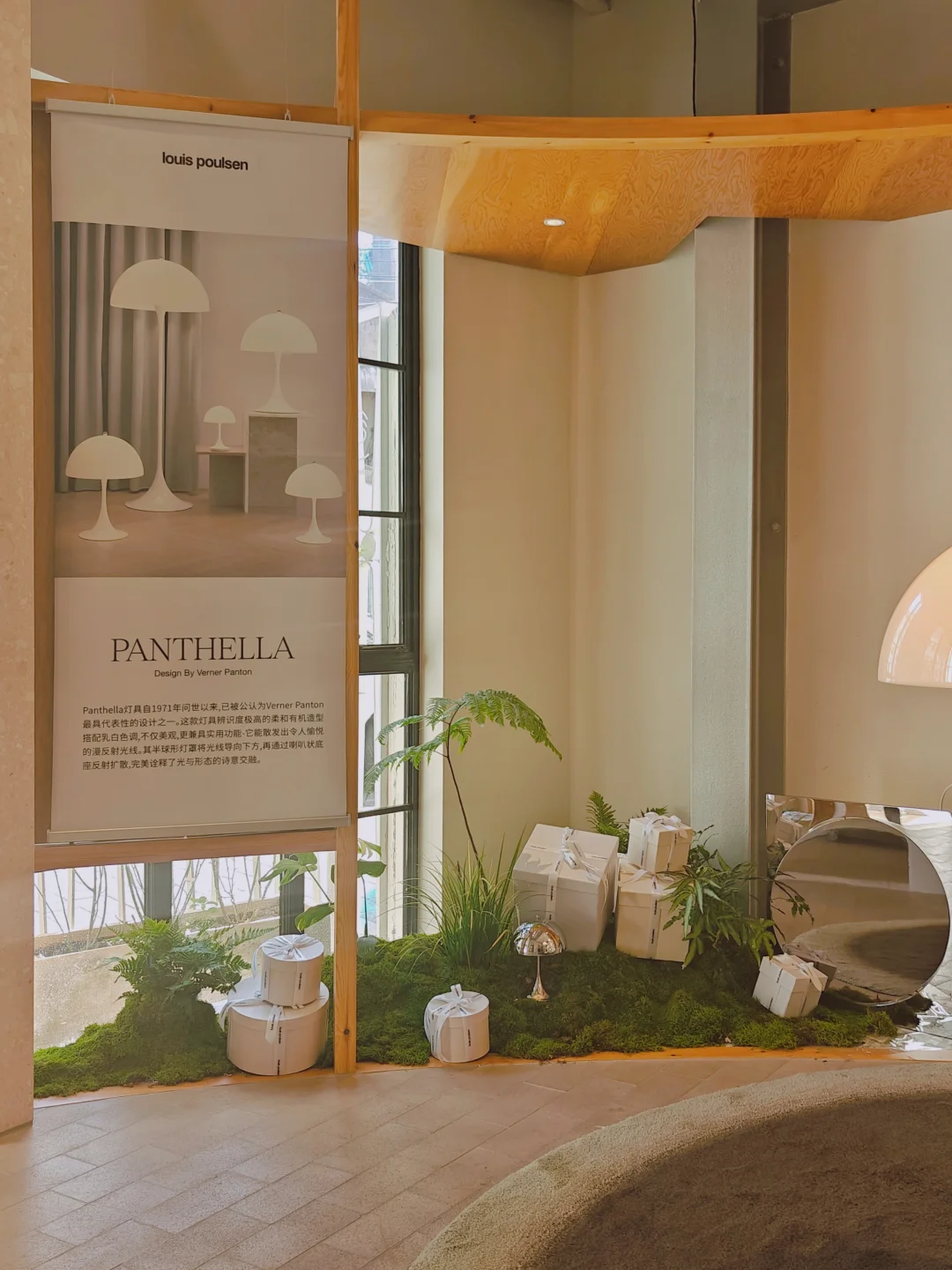 Verner Panton于1971年为Louis Poulsen设计的经典灯具系列,造型模仿蘑菇,采用透光性良好的蛋白石丙烯酸等材质制作灯罩,半球形的顶部灯罩将光线向下引导,由喇叭形底座反射,从而产生柔和、扩散且无眩光的光线,营造出舒适的照明氛围。它不仅是一个灯具,更是一件可以独立存在于房间中的雕塑作品,体现了功能与形式的完美结合。
