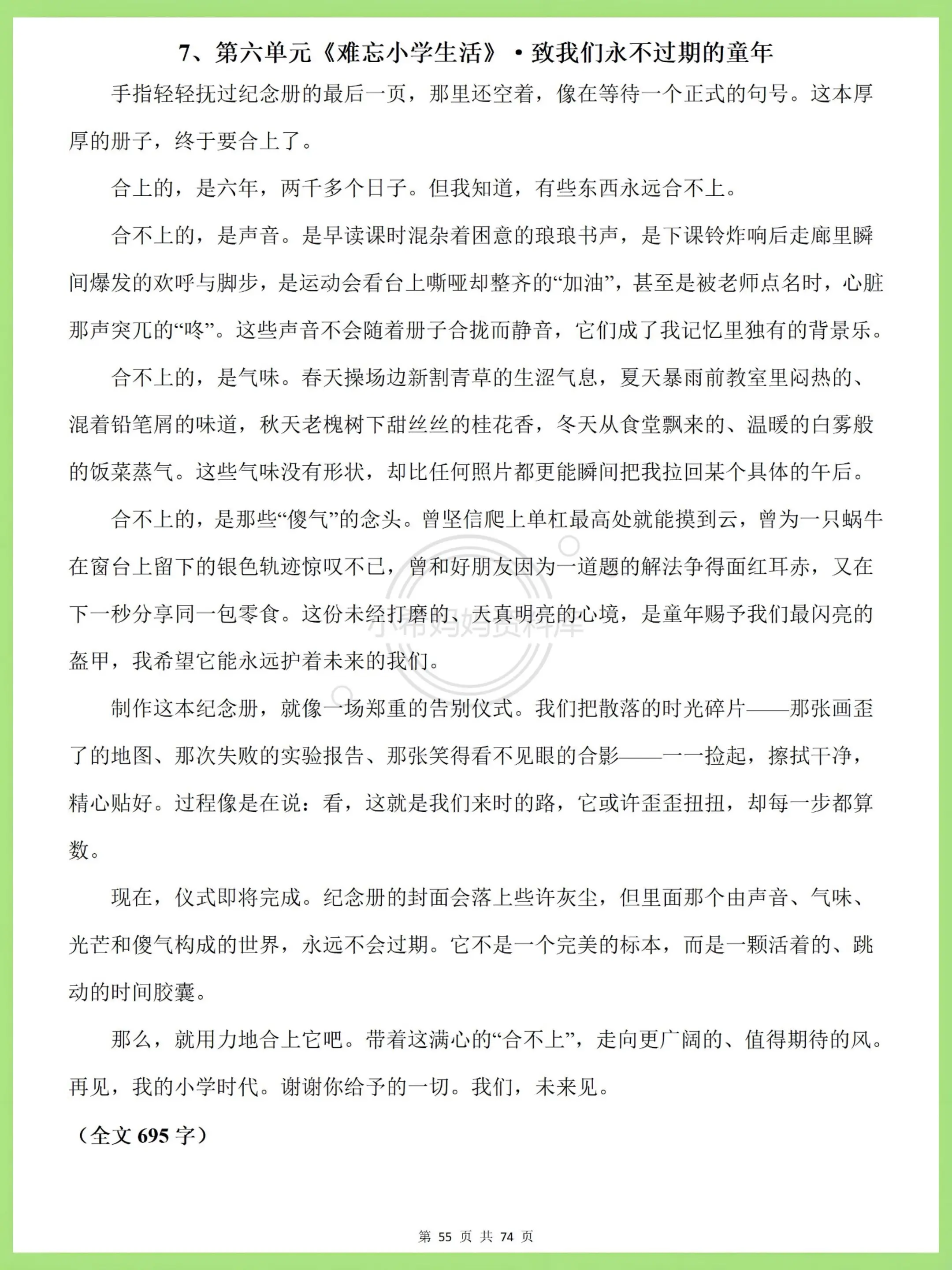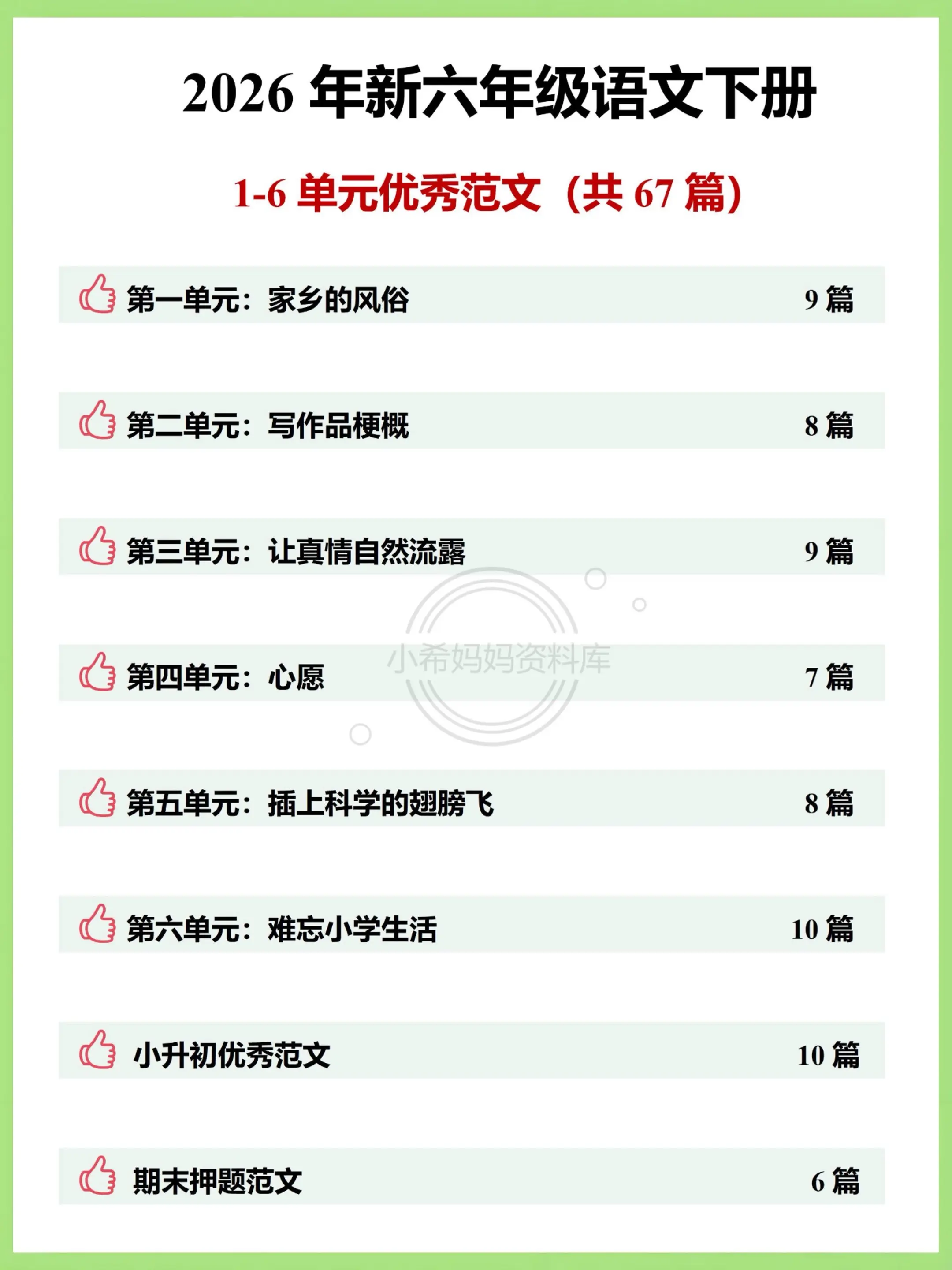 还有小升初高频考点范文+期末押题范文,日常练笔、考前素材积累都能用,吃透这份,六下语文写作分数稳稳提,辅导再也不费妈!