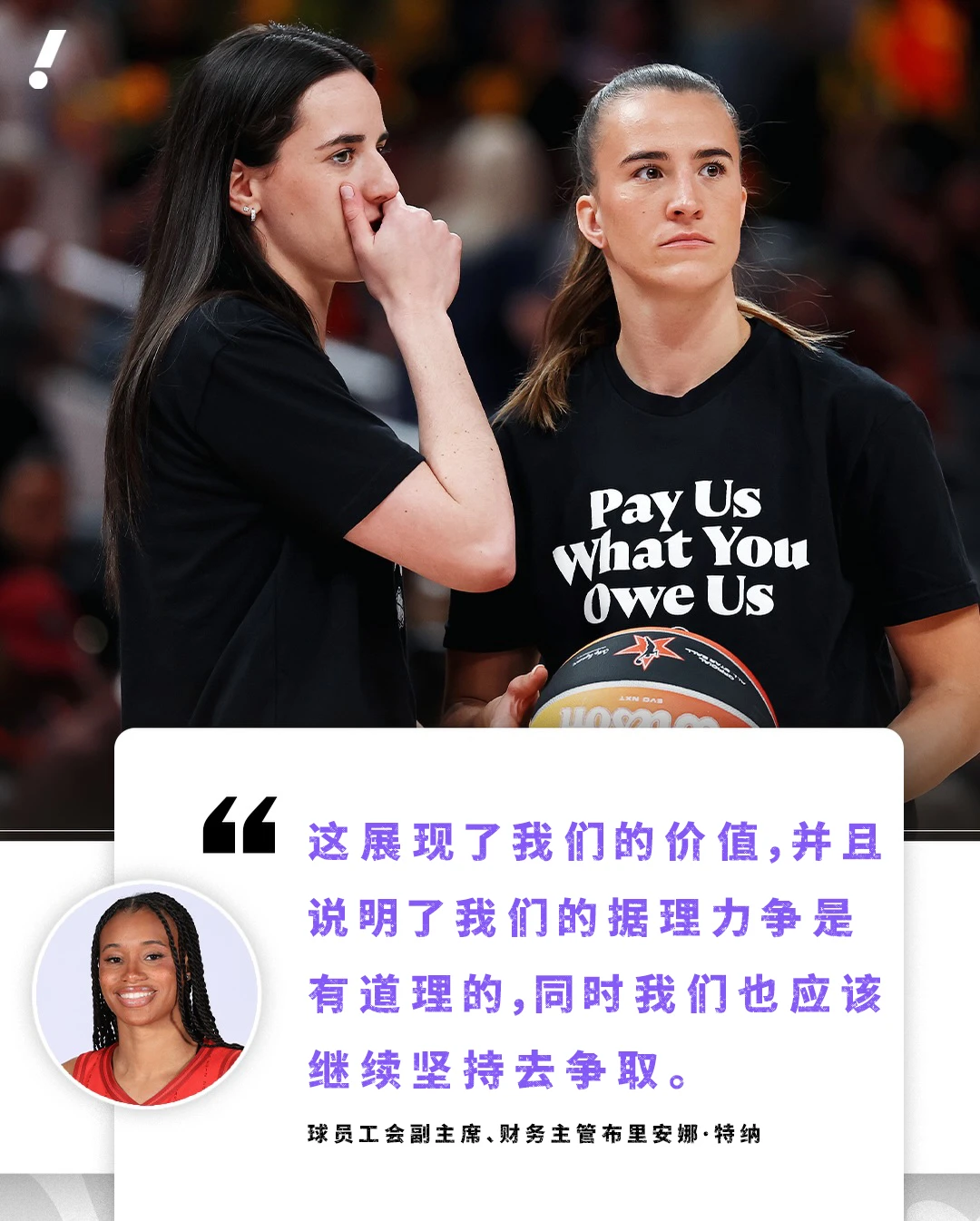 而球员工会今天公布上赛季的收益分成的目的也很明显。球员工会副主席、财务主管布里安娜-特纳则在最新的采访中表示:“这展现了我们的价值,并且说明了我们的据理力争是有道理的,同时我们也应该继续坚持去争取。”