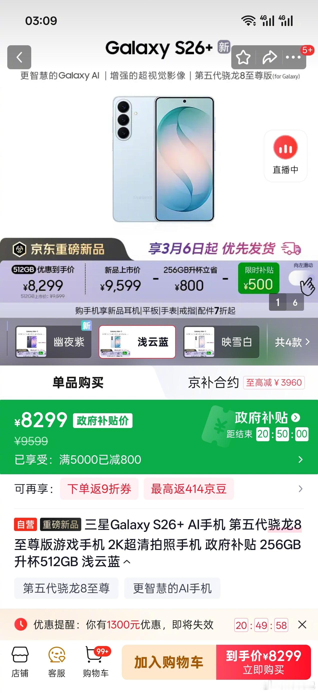 S26+12+256 7999 官网暂未开售12+512 9599国补+预售优惠到手 8299