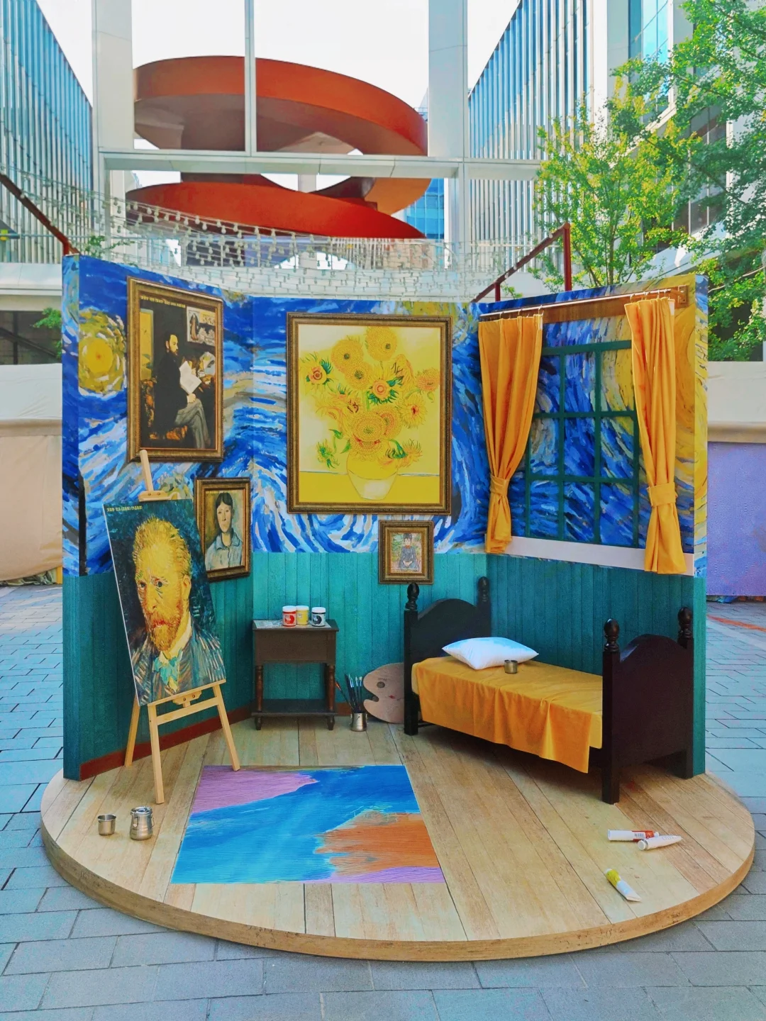 可以走进“梵高的房间”,沉浸式感受画里的氛围;在金黄的“麦田”和“巨型向日葵”间漫步,亲身感受印象派的色彩浪漫;还有“奥赛名画墙”,站在巨幅名作前打卡,轻松get和经典同框的照片。