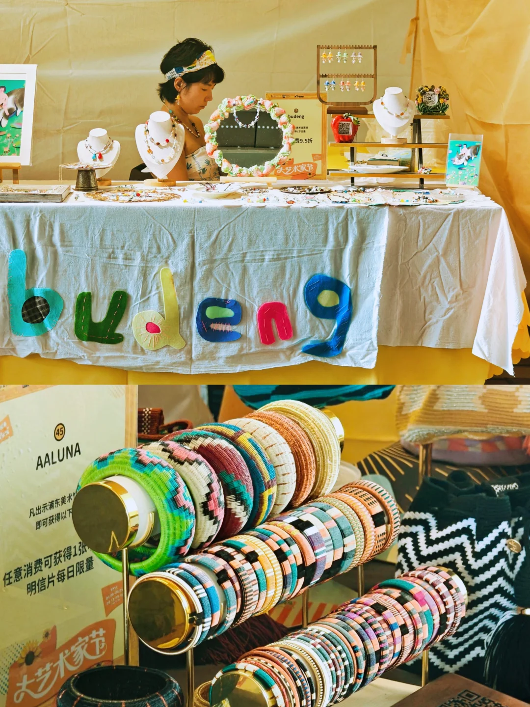 50多家生活美学品牌,包括香氛、手作、陶艺等等丰富品类,还有超级划算的浦美文创周边,折扣很大,还有超多抽奖,很难不剁手。不用进美术馆就能把艺术感带回家;现场还有速写、立体毛毡、陶艺体验、彩绘编发等环节,动手参与就能当一回“大艺术家”。