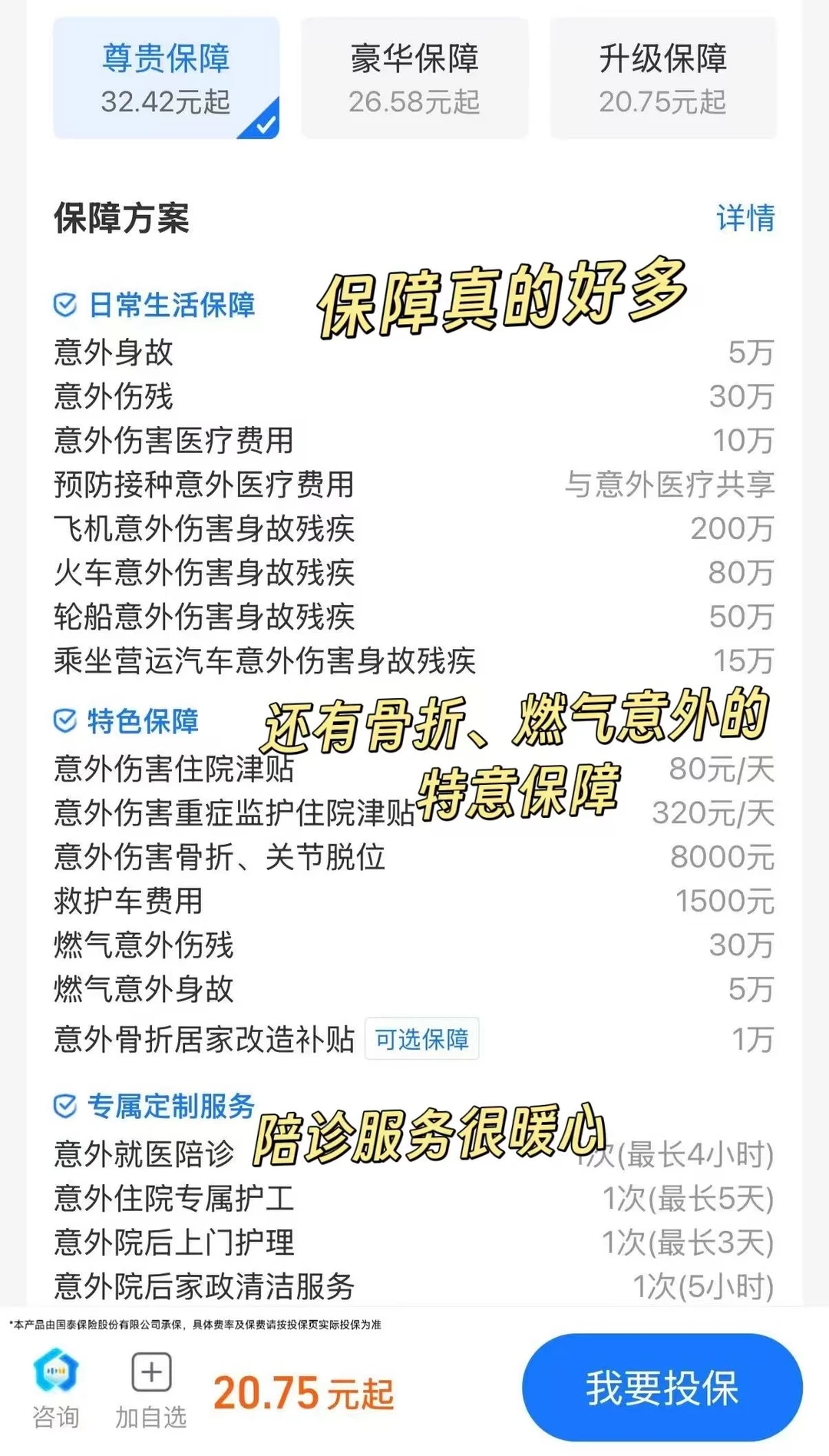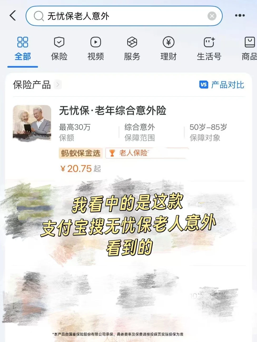 这几天我也自己做了很多功课,发现支付宝上的无忧保老年综合意外险还蛮不错的: