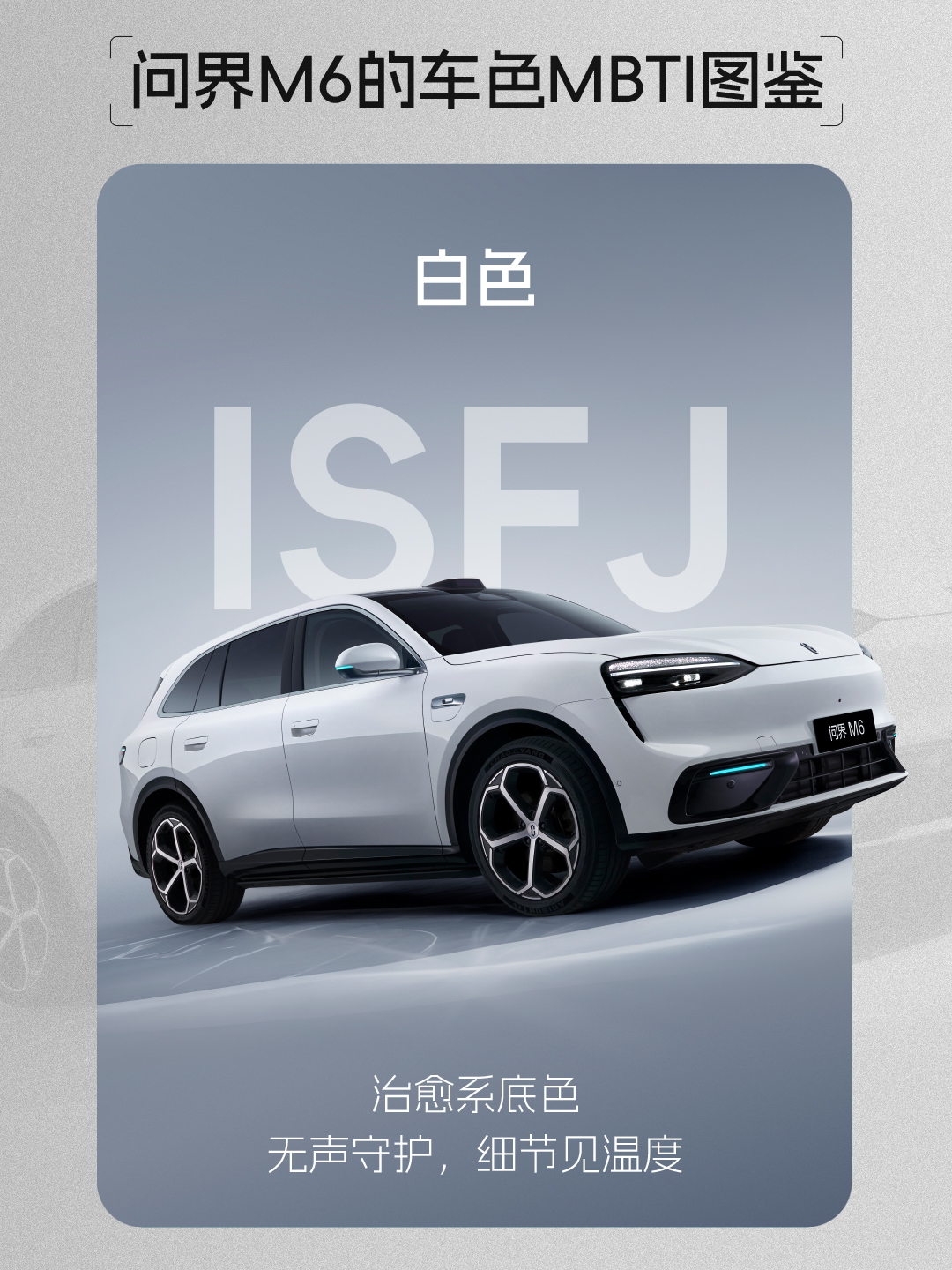 值得留意的是,从视频呈现的漆面质感来看,问界M6这次工艺明显下了功夫,光泽度和细腻感比预期更高级。这让它跳出了单纯的“科技豪华”舒适区,真正实现“科技豪华”与“年轻新锐”两手抓。25-30万级刚好是很多年轻人购车时重点考虑的价位,问界M6这张“新锐王牌”瞄准这个市场,算是打出了一手好牌。余承东公布问界M6车型全色系