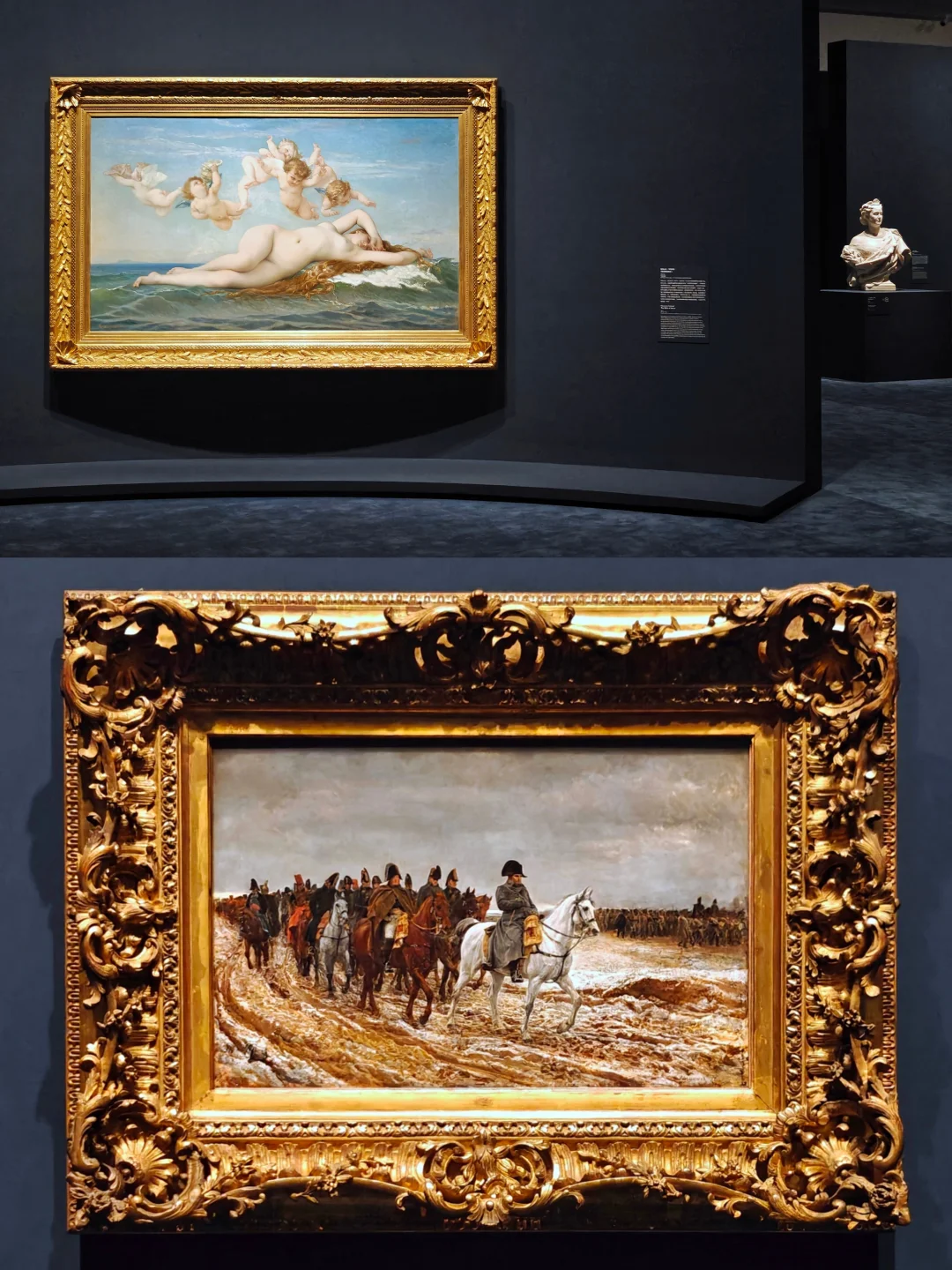 当时的流行题材(可理解为借神话题材光明正大ghs),维纳斯眼神暧昧体态撩人,展现出洛可可的余韵,充满感官诱惑。卡巴内尔的唯美主义,对命运、宗教、细腻情感有着诗情化的描绘。可惜他死对头马奈的《奥林匹亚》并没有一起来,否则并置且加上左拉对这两幅画截然不同的评价(倒是有一副马奈的《左拉肖像》,可在这幅画里找找《奥林匹亚》)倒是很有意思了。