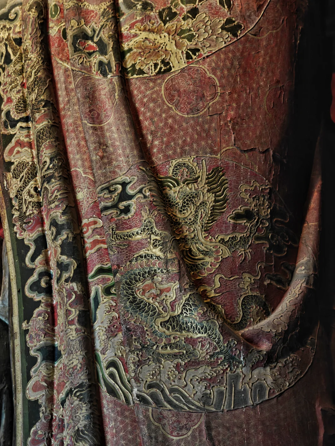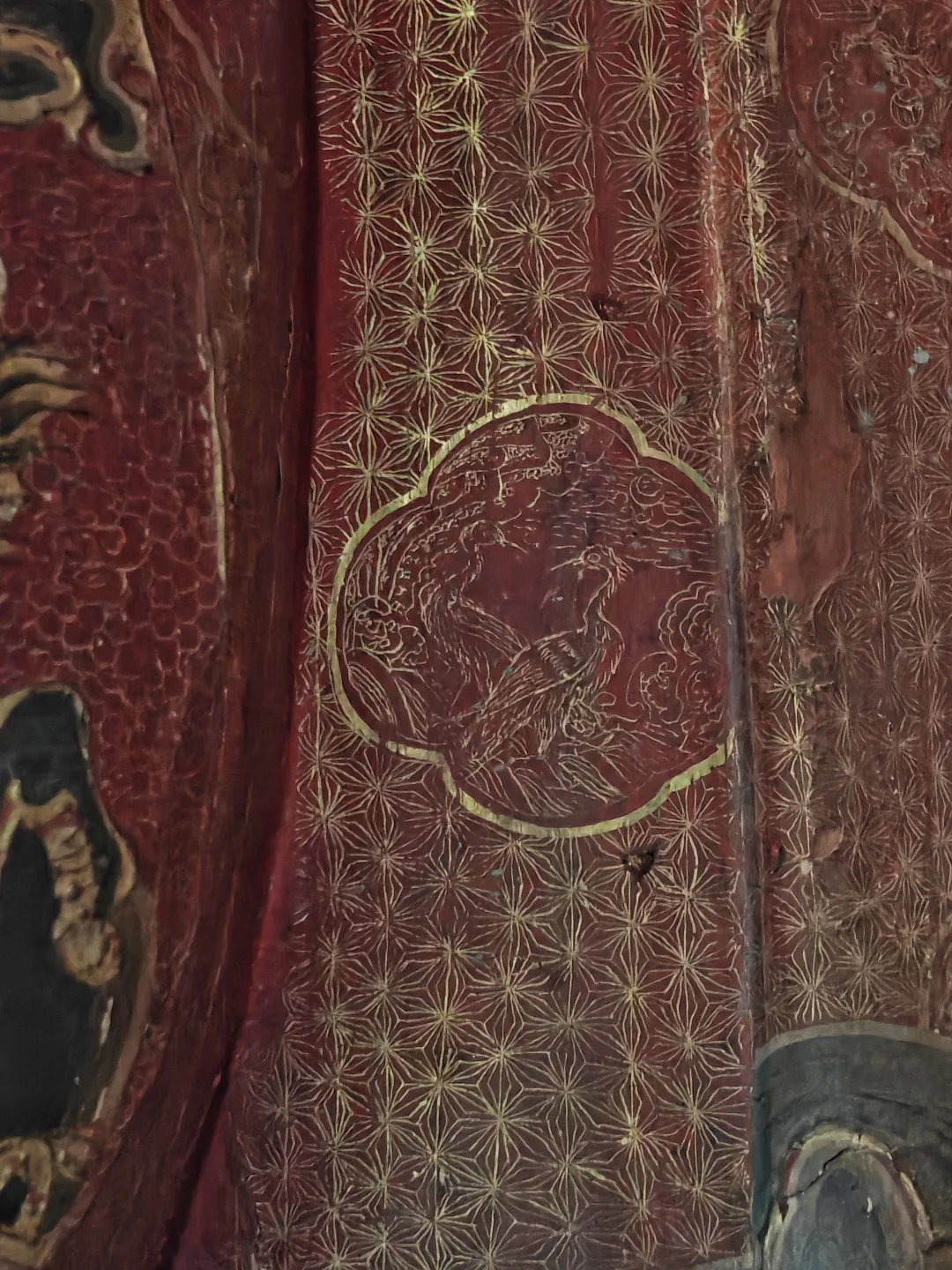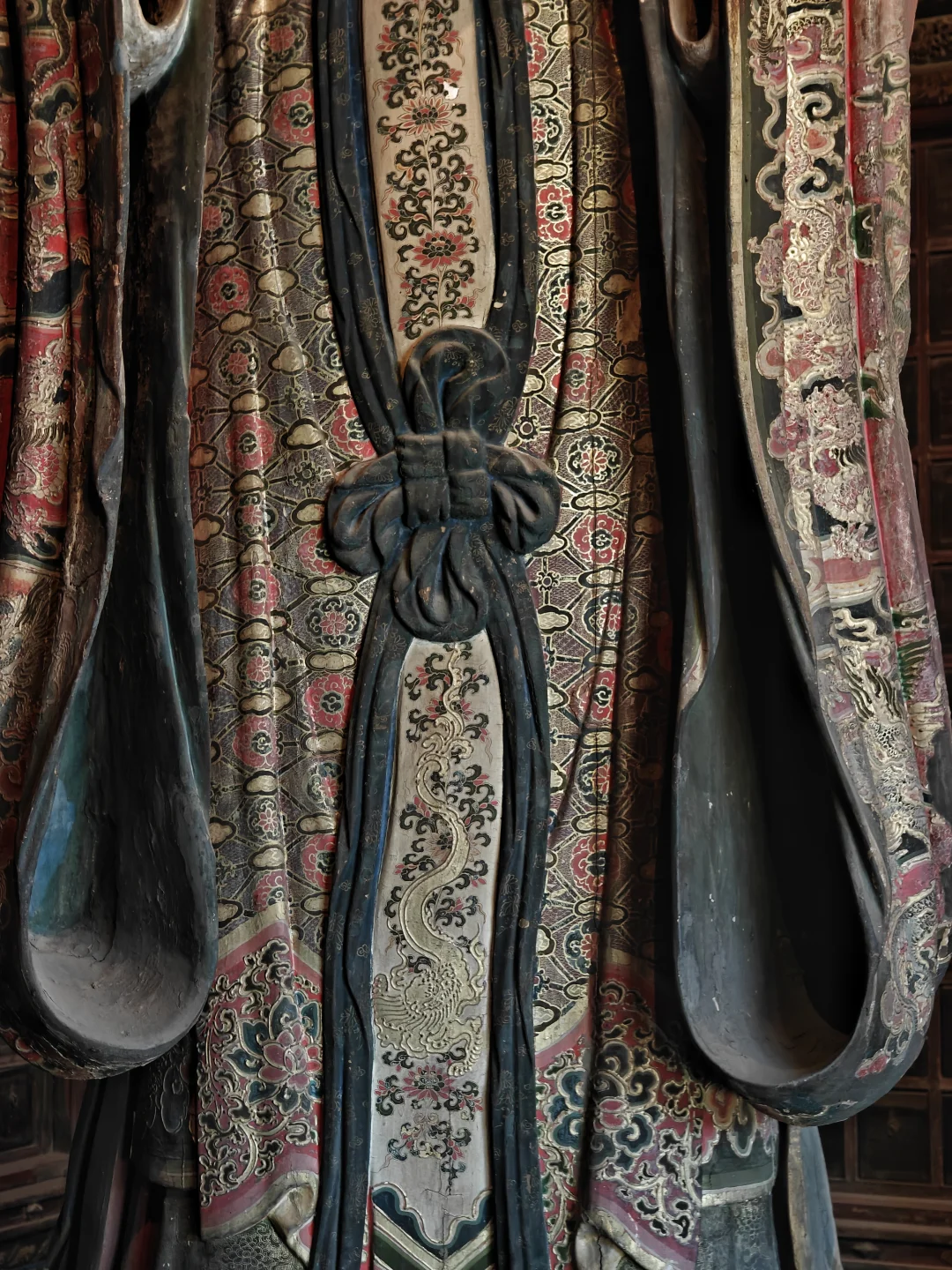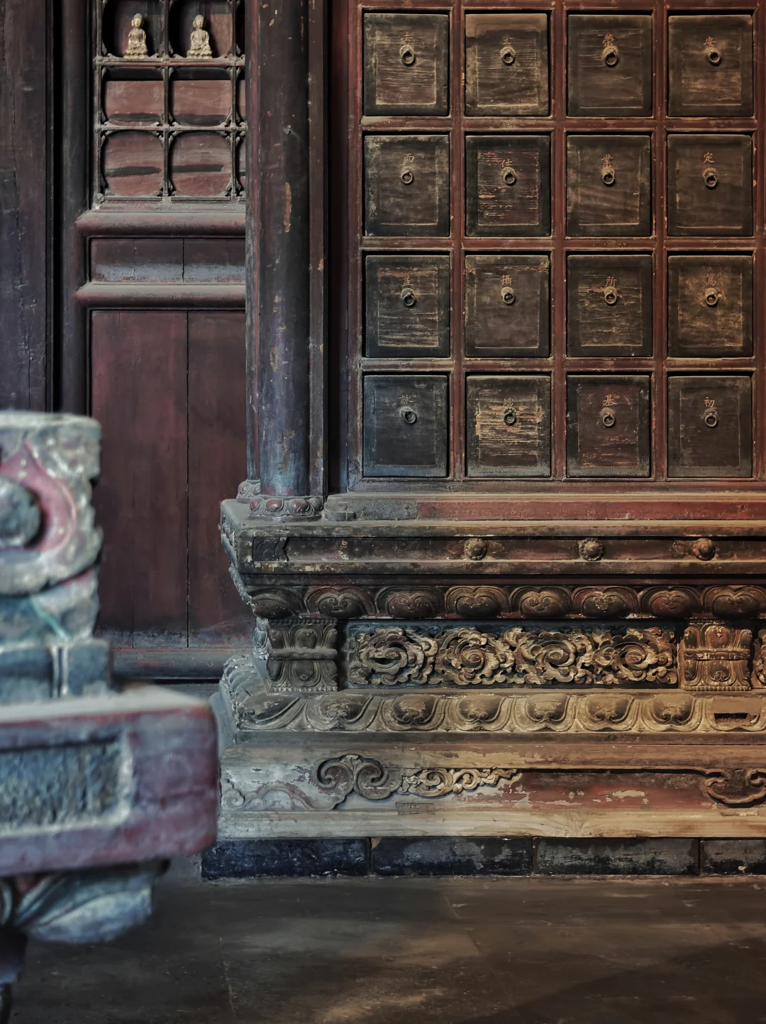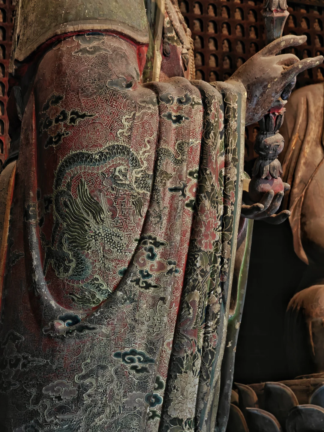 智化寺\n⏰9:00-17:00 周一闭馆\n📍北京市东城区禄米仓胡同5号\n🎫20(每周三免费200人)\n📢免费讲解老师讲得非常好,建议跟听(9:30和14:00)\n\t\n🛕智化寺完整保留了明早期官式建筑特征:屋顶举折沿用宋制(上陡下缓),步架深度自檐至脊递减;保留宋元遗风(如生起、侧脚),同时发展出简化构造(如通柱式楼阁)。梁思成评价其为\"小半部明代官式建筑史\",是研究宋元至清建筑演变的关键实物。\n\t\n👉本篇介绍每个殿内主要看点,总体介绍见上篇。\n\t\n🛕山门:英宗赐汉白玉横匾“敕赐智化寺”\n🛕智化门:原塑有四大天王像,现已无存。门前两通大石碑《敕赐智化禅寺之记碑》和《敕赐智化禅寺报恩之碑》\n🛕钟鼓楼:鼓楼内的大鼓现放在智化殿内西侧,鼓身绘有金龙,且为“沥粉贴金”工艺,极为少见;钟楼内大钟原件保存于大钟寺\n🛕主殿智化殿:原三世佛造像被移至大觉寺主殿。现在这三尊清代佛像原属本寺大悲堂。背面明代壁画《地藏菩萨与冥府十王》原是卧佛寺的旧物,中央绘地藏菩萨,两侧各六人,左侧道明和尚,右侧闵长者,其余为冥府十王。另外存有一些造像,据说是当年作为仓库时留存下来的别处佛像,特殊时期也受到了保护\n🛕东配殿大智殿:原供有观音菩萨、文殊菩萨、普贤菩萨,如今皆无存。目前展示的是智化寺明代彩画工艺研究与复原成果,彩画颇具宋代遗风,色调沉稳庄重,并运用截金工艺、罩染手法\n🛕西配殿藏殿:存放八角形转轮藏,顶部是寺内唯一保留的曼荼罗藻井。金丝楠木,繁复瑰丽,共八面,每面45个抽屉,藏360部经书。抽屉上雕有精美佛像,顶上金大鹏和龙女雕工精美,角上摩羯鱼口生莲花,隔柱饰有狮身飞羊、狮子和大象,至高中心处为一尊持智拳印毗卢遮那佛坐于莲花座上(需走到屋角才能看到部分),底部石质须弥座\n🛕如来殿:重檐庑殿顶,极少见。布满小龛,龛内设小佛。此层前后金柱为通柱,通过上层楼板,往上延伸成为上层檐柱;通柱的使用简化结构,有利于上下楼层空间的展开。供有释迦如来本尊及两位胁侍。左大梵天,右帝释天(明承宋制),长袍上绘有鸟、牡丹、龙、狮的图案,模拟出刺绣和精细织物的质感。殿前香炉明万历二十八年造,刻有很多道教的符号,可见当时有佛道融合现象。\n🛕万佛阁:如来殿二楼,供奉三身佛,不开放。整座佛阁有八千余尊佛像。\n\t\n
