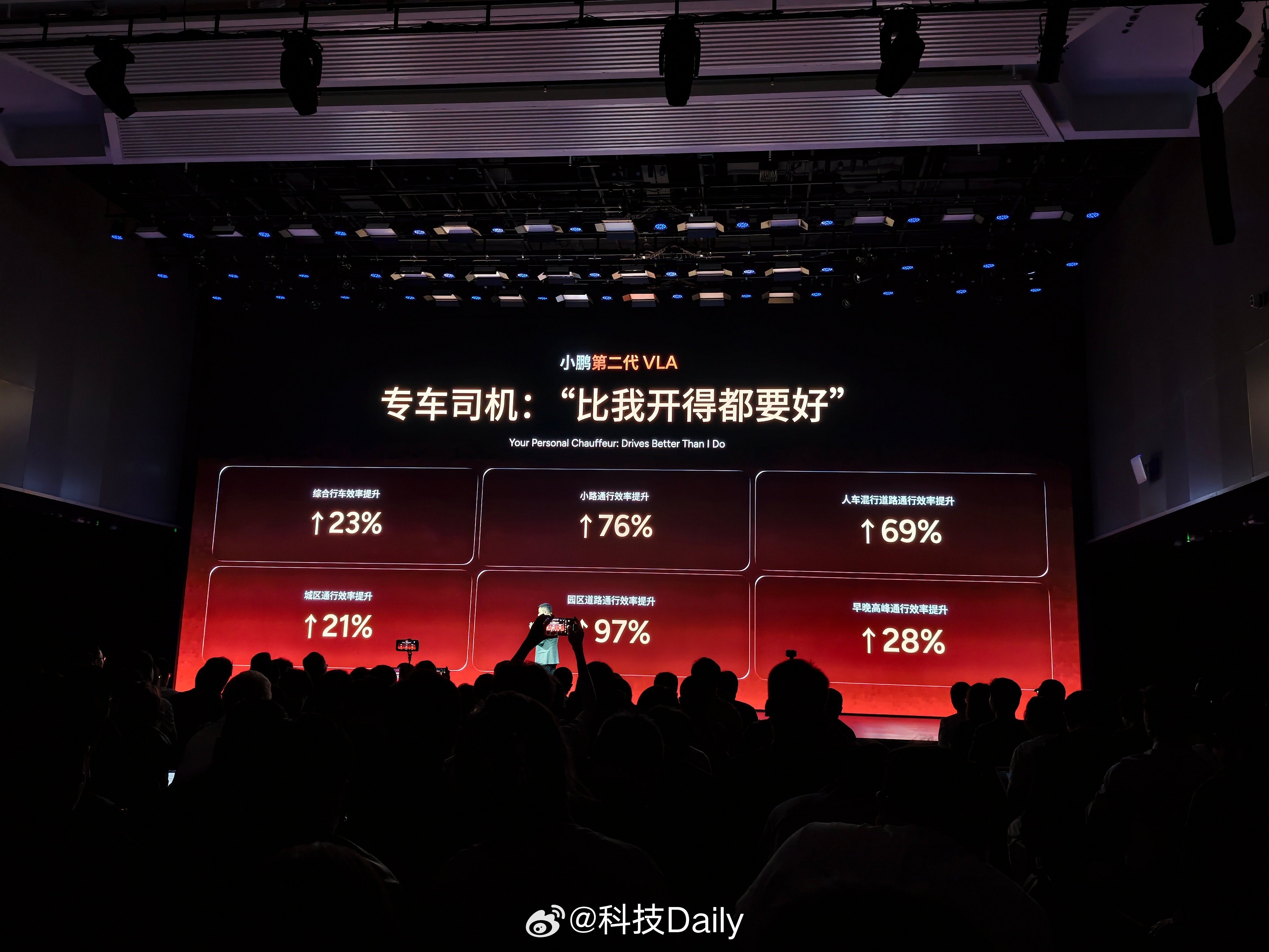 通行效率比老司机还快?规划能力靠谱,效率高,开得快,看谁再说辅助驾驶看的慢了。效率为先,速度快,鹏可以啊。这不相当于请了个更专业的专车司机,陪我们辅助前行,行车效率高,充分调用AI的能力,毕竟AI可以持续进化分析情况找到最优解。看发布会现场的展示感觉第二代VLA成精了。一开始展示的雨天、夜市等极端路况下的表现已经很惊喜了,没想到效率还这么高。开年给车主们最好的礼物,鹏子可以。小鹏第二代 VLA 发布小鹏第二代VLA妈妈都爱开的国民智驾 广州·小鹏汽车广州总部体验中心