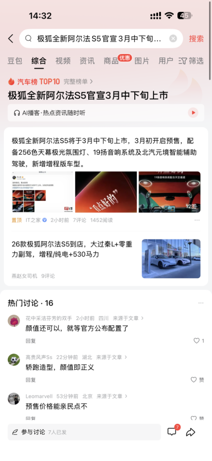 本来是单纯追《今夜喜友秀》,看到极狐的赞助标识,好奇去搜了下,没想到被极狐全新阿尔法S5的官图圈粉。外观太有格调了,像陈妍希米兰时装周的造型一样,温柔又有气场,没有多余设计,简约却很有记忆点。最吸引我的是智驾小蓝灯,官方说能清晰展示高阶辅助驾驶工作状态,实用又有科技感。联想到之前首批L3级自动驾驶专用号牌,忍不住猜,这次极狐会不会带来惊喜?新车搭载城区NOA,智驾配置很用心,还没上市,每天都在蹲最新动态✨