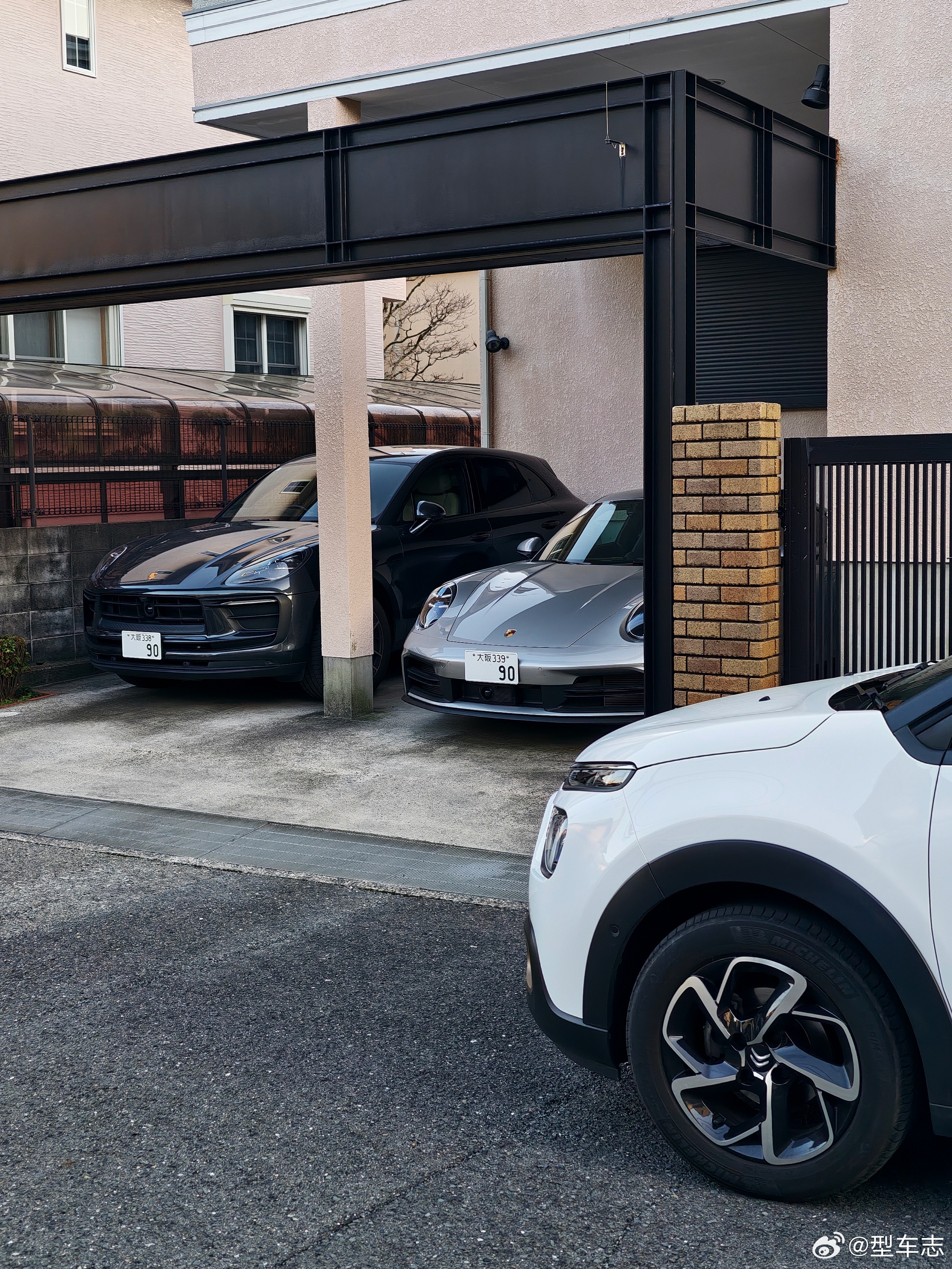 型车街拍法系车典型用户画像:车库里一辆燃油Macan,一辆992,平时买菜开雪铁龙C3。