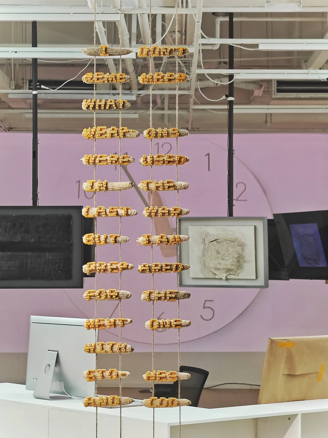 作品:玉米铭刻技术,既回应当下地质与生产结构层面的土地流失,也为未来物资匮乏境况做准备