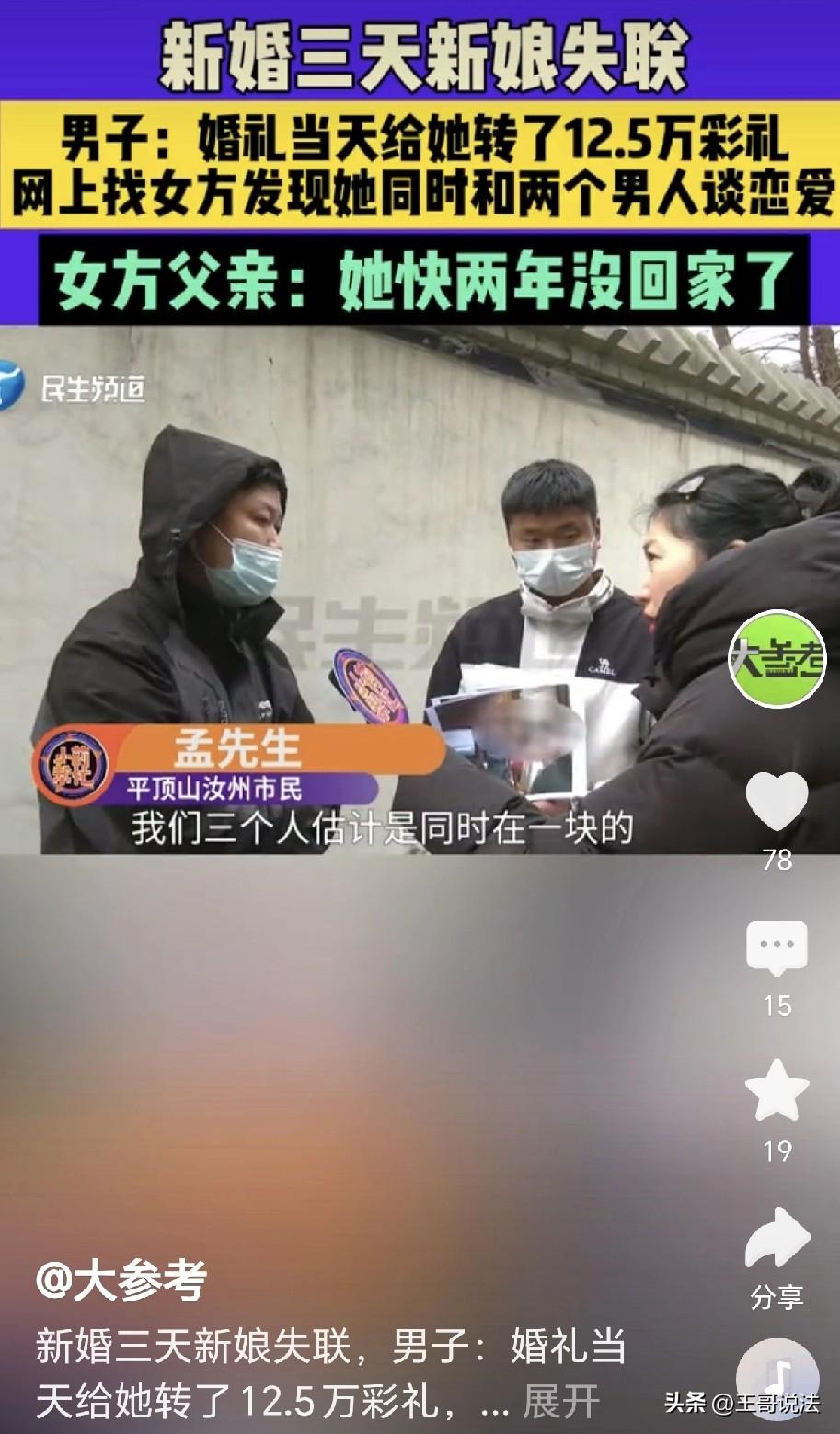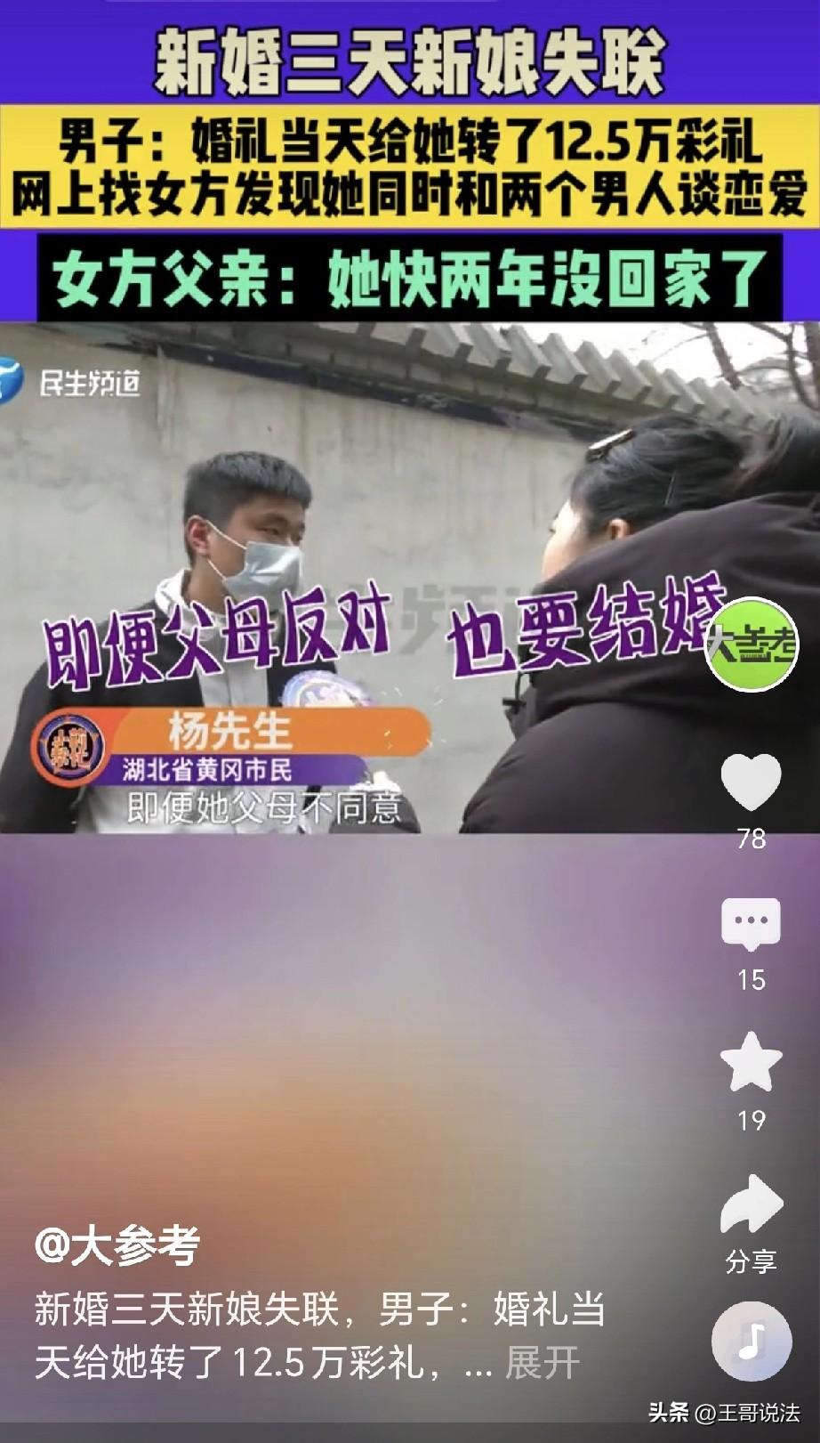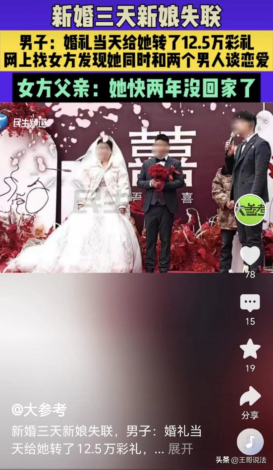 “痴心男子负心女!”湖北黄冈,一男子结婚当天,给新娘转了12.5万,俩人刚过3天,新娘就跑不见了,男子到处寻找,新娘没有找到,却找到了新娘的前男友,前男友咬牙切齿: 我想和她结婚过日子,一直给她交工资,交了好几万,没想到她同时谈了两个男子!男子这才知道,结婚时新娘的家人是别人假冒,他和前男友都是受害者,两人立刻报案!女子父亲: 她两年没回家,你们去法院起诉! 杨先生的女友,美丽漂亮,杨先生爱她,一心想和她结为夫妻。 俩人谈了两年,一切水到渠成,眼看婚礼在即,女友突然给他发来了视频。 视频里的女友伤痕累累,她向杨先生哭诉,说他们的婚事,家里人不同意。 她说身上的伤痕,全是她父亲打的,可是她下定了决心,非要嫁给杨先生不可! 杨先生心里感动,他暗自发誓,绝不会娶另外的女子,他立刻筹备婚礼,热热闹闹把女友娶进了家门。 可女友又说,结婚家里人不同意,因此她家里并不会来人。 可是女友表示,她的闺蜜和姐姐会来参加,这也是她唯一的慰藉。 婚礼照常进行,亲朋好友们齐聚一堂,见证了他们真诚的爱情。 杨先生感动女友的痴心,从这一天起,女友就正式升级为了他的妻子。 他为表诚意,在婚礼当天就给妻子转了12.5万,这是彩礼,也是他满心的情谊。 婚礼办完,他们甜甜蜜蜜,过了3天,他们如胶似漆。 可到第3天时,杨先生发现,妻子不见人了,他四处寻找,始终没有她的踪迹。 杨先生慌了,他怕妻子出了意外,更怕她家来人会带她回去,可是他拨打电话,发现已经被妻子拉黑,他更加慌了,他俩结婚,并没有领证! 杨先生一路找寻,始终没有找到妻子的信息,他全网寻找,出乎意料的找到了另一个男子! 男子是妻子的前男友孟先生,孟先生也在寻找杨先生的妻子。 原来,孟先生家在河南平顶山,他和女子一直在谈恋爱。 孟先生一心想和她好好过日子,每个月的工资都转给女子,现在一算,大概转了有好几万元,一直到女子和杨先生结婚前一个月,女子才和他提出了分手。 而且女子说被父亲打伤,其实她是被孟先生打的,孟先生生气,自己的感情被她骗了! 孟先生还说,杨先生婚礼上那位闺蜜和姐姐全是假的,根本就不是女子的亲戚。 闺蜜和姐姐分别是孟先生朋友的妻子和15岁的女儿,她们不知道什么时候搅在了一起! 他就是没有想到,女友有这么重的心机,就连他身边人都被拉走和她一起去骗人! 俩人苦笑一声,他们都是受害者,双双被女子骗的钱财两空! 俩人联系女子父亲,可父亲表示,女儿有两年没回过家里。 眼看他们的钱财就打了水漂,俩人立刻报警! 《刑法》第266条规定:诈骗罪是指以非法占有为目的,用虚构事实或者隐瞒真相的方法,骗取数额较大的公私财物的行为 该女子同时交往杨先生和孟先生,不仅骗走孟先生数年工资,还收下了杨先生12.5万彩礼。 她拿到钱后立刻就失联拉黑,这就说明,她从一开始就是欺骗的目的。 她和杨先生结婚,结婚证都没有办理,她从头至尾,就没打算和杨先生长期相处。 她通过虚构事实骗取信任,一边对杨先生谎称被父亲打伤、家人反对婚事,实则受伤是孟先生发现被骗后的争执所致。 她又婚礼上找来陌生女子,假冒闺蜜和姐姐,全程伪造出愿意真心结婚的假象,让杨先生基于错误认识主动给她转了12.5万彩礼! 她诈骗两人总金额已超15万元,已经达到“数额巨大”范畴,应处3年以上10年以下有期徒刑。 天网恢恢,别以为自己能逃脱法网,等待她的是法律的严惩。 对此,你怎么看?