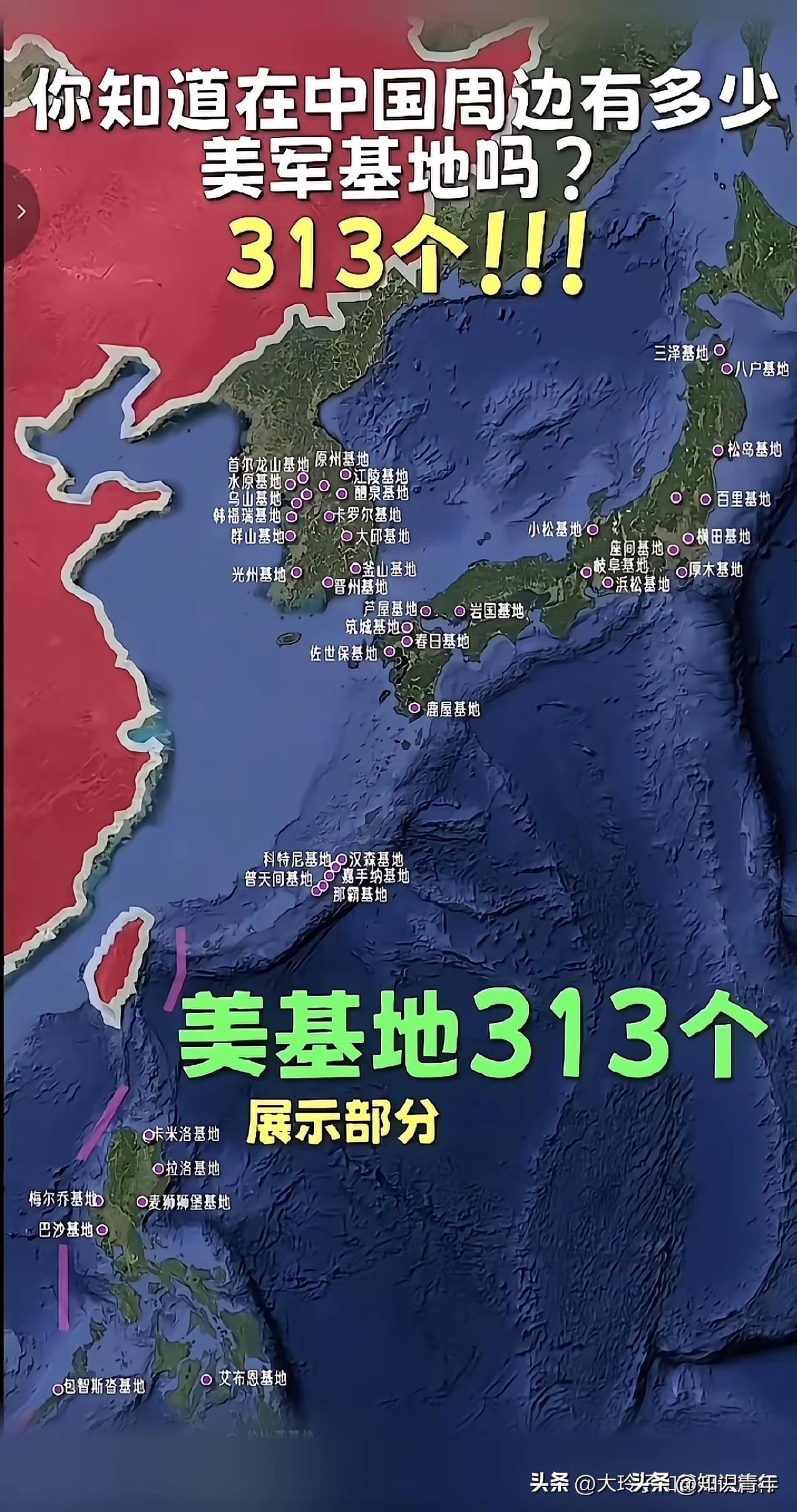 313个美军基地在中国周围?这密密麻麻的,感觉在家门口,被美国虎视眈眈的盯着,这要是攻击我们,可太吓人了,之所以不打我们,是因为我们足够强大,他们有多少导弹对准我们,我们就有多少导弹去迎击。 这个数字听起来确实吓人,三百多个军事基地像一张网,从日本、韩国一路铺到关岛、澳大利亚,甚至印度洋上都有。普通人看了地图,心里发毛很正常。但咱们得把这事掰开看,光害怕没用,得看懂这里面的门道。 这些基地不是一天建成的,是冷战结束后美国“亚太再平衡”战略一步步推进的结果。目的很明确,就是要维护它在西太平洋的绝对主导权,看住中国这个快速崛起的对手。但这些基地的性质差别很大。有些是大型空军基地,像冲绳的嘉手纳,能起降战略轰炸机;有些是海军基地,像横须贺,停着航母;还有很多是小型监听站、后勤补给点,甚至就是几栋房子租给美军用。把它们全算成“攻击性基地”,有点夸张了。 关键问题来了:这么多基地,美国敢不敢用它们来打中国?答案是,它得好好掂量掂量。这就是你提到的“导弹对导弹”的逻辑,军事上叫“相互确保摧毁”的变种,或者说“区域拒止/反介入”能力的成功。中国这些年埋头苦干,搞出了两样让美国非常忌惮的东西:东风-21D、东风-26这些号称“航母杀手”的反舰弹道导弹,以及覆盖整个第一岛链的精确打击火力。简单说,美国那些前沿基地,特别是日韩的,都在中国导弹的射程之内,而且精度很高。战端一开,这些基地不会是进攻的跳板,反而会成为最先被拔掉的钉子。 这就形成了一个微妙的“恐怖平衡”。美国部署基地,是展示存在感和威慑力,希望吓阻中国改变现状。中国发展“反介入”能力,是告诉美国,你的基地和航母在我眼里是活靶子,别想轻易动手。双方都在赌对方不敢先开枪。这种平衡虽然紧张,但客观上避免了大规模热战。历史上看,两个核大国、两个军事巨头直接开打,后果谁都承受不起。 所以,这些基地的真正作用,往往不是在战时,而是在平时。它们像一个个锚点,把美国的盟友体系牢牢拴住。日本、韩国、澳大利亚为什么在外交上紧跟美国?这些基地就是最实在的“安全保证”。美国也用这套体系对中国进行日常的侦察、监视、情报收集,保持军事压力。这是一种“冷对抗”的常态。 对中国来说,破解之道不是去一个个炸掉这些基地——那等于开启世界大战。而是你打你的,我打我的。你搞基地包围,我就发展“不对称优势”。除了导弹,还有庞大的潜艇部队、越来越强的空军、以及正在建造的航母编队。同时,中国积极经营自己的“朋友圈”,深化与俄罗斯的战略协作,推动上合组织、金砖国家等多边平台,在经济和外交上对冲美国的军事压力。 更重要的是,中国把大量资源投向了“反导系统”建设。你在家门口部署导弹瞄准我,我就在家里装上“盾牌”。红旗-9、S-400等防空系统层层部署,再加上中段反导技术的试验成功,都是为了确保即便有少数导弹打过来,也能被有效拦截。攻防一体,才是完整的威慑。 普通人觉得“吓人”,是因为只看到了对方的矛。而国家的战略决策者,必须同时看到对方的矛、自己的盾,还有自己手里的矛。中国军事建设的思路很清晰:让你打我的代价高到无法承受,战争自然就打不起来。这就是“以战止战”的智慧。 回过头看,这三百多个基地,既是压力,也是动力。没有这种步步紧逼的压力,中国军事现代化的紧迫感或许不会这么强。某种意义上,它逼出了一个更强大、更自立、战略更清晰的中国。大国博弈就像下围棋,不在于一时一地的棋子多少,而在于全局的“势”。中国正在做的,就是稳稳地积蓄自己的“势”。 各位读者你们怎么看?欢迎在评论区讨论。