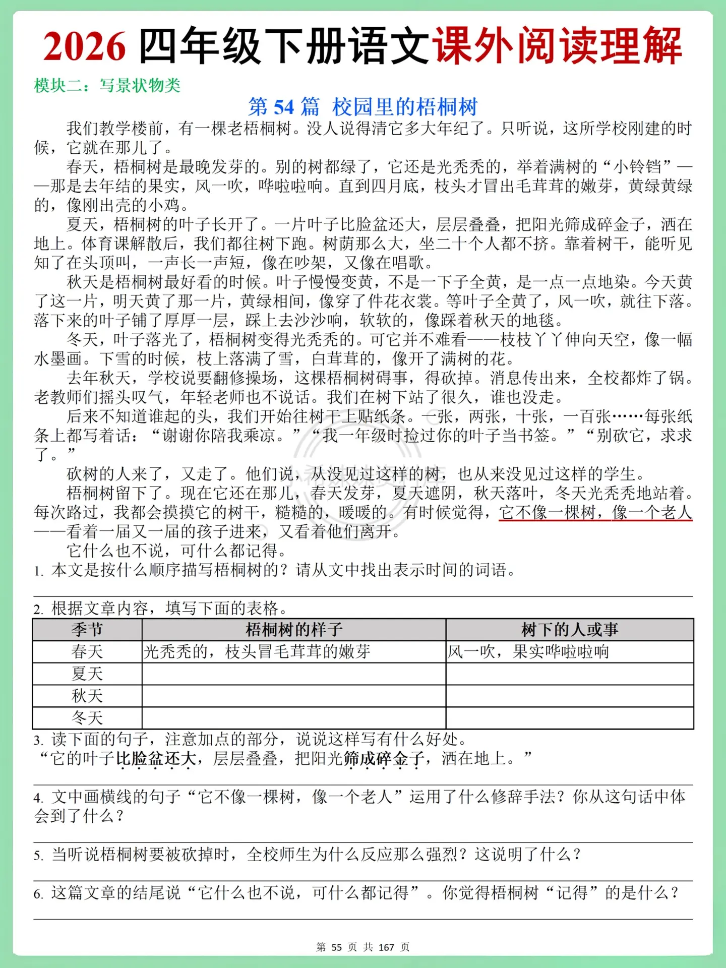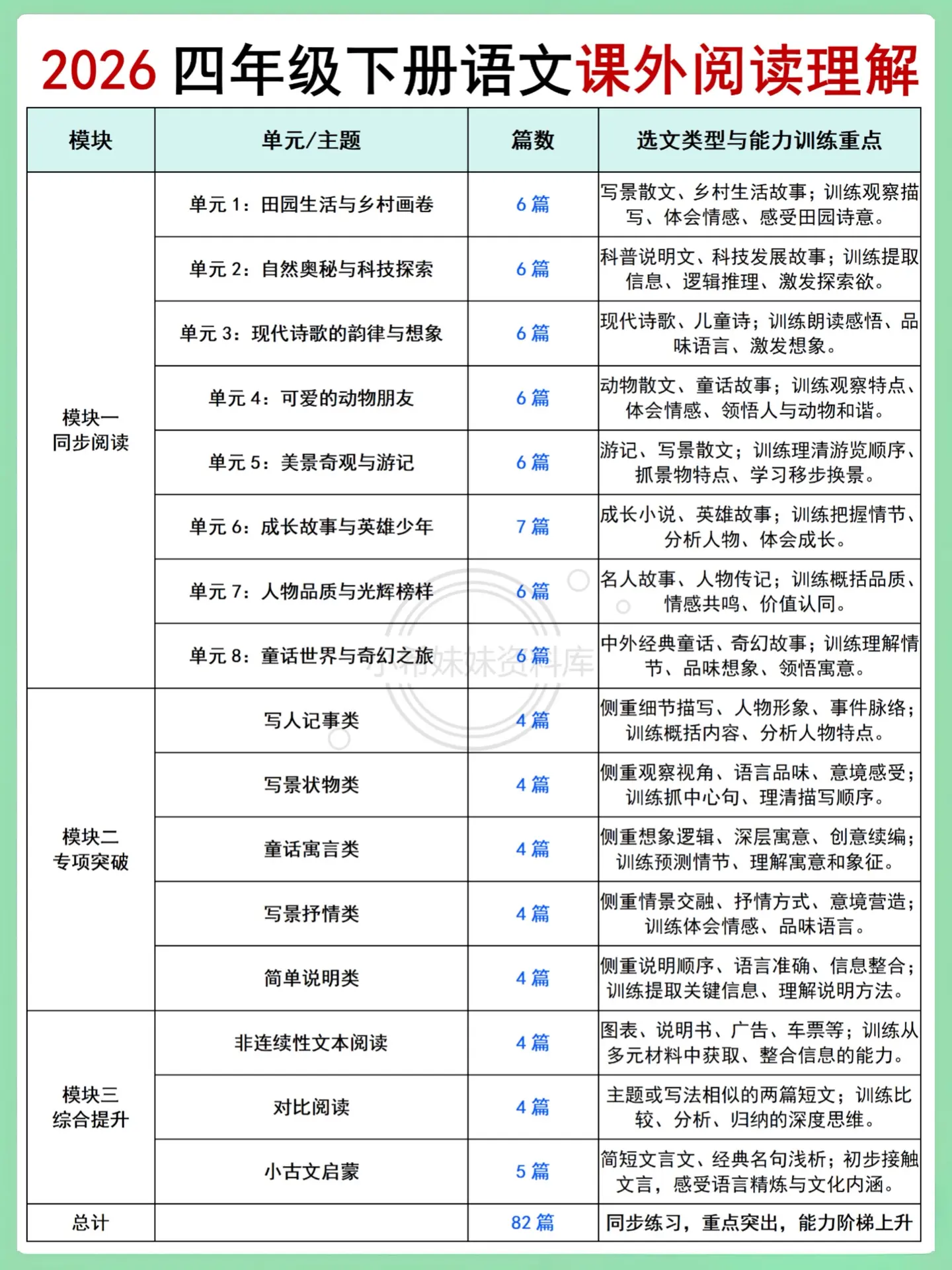 2026四下语文课外阅读理解专项训练。谁懂啊!这套四年级下册阅读理解太...