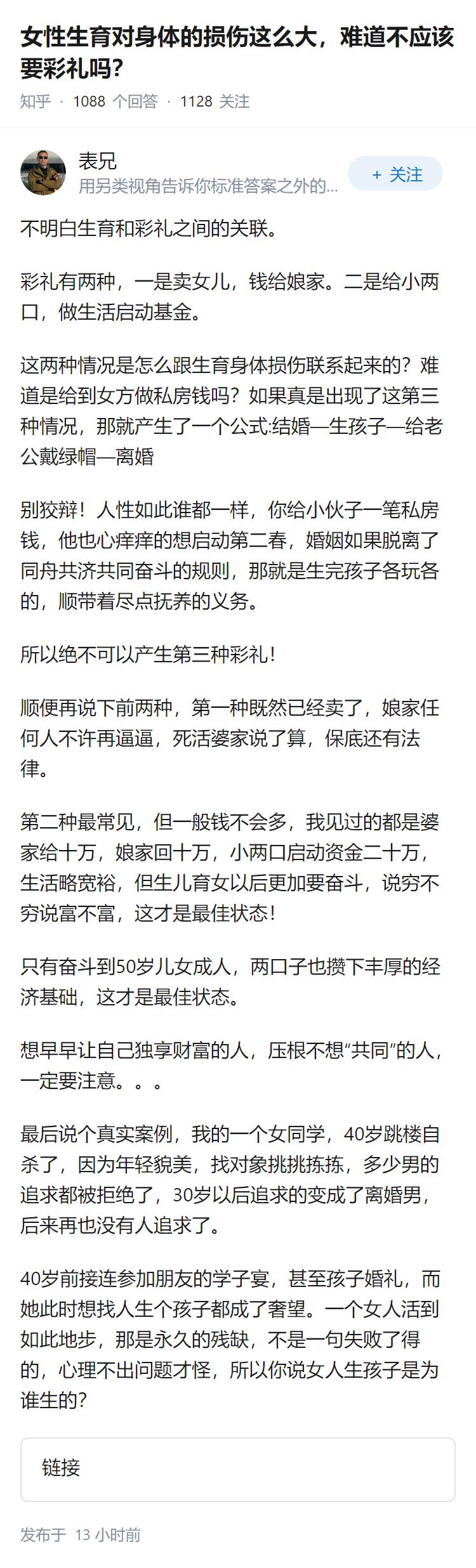 【20万以上彩礼就是卖女儿】究竟对不对? 相亲论坛匿名贴。 一位90后女士记录了