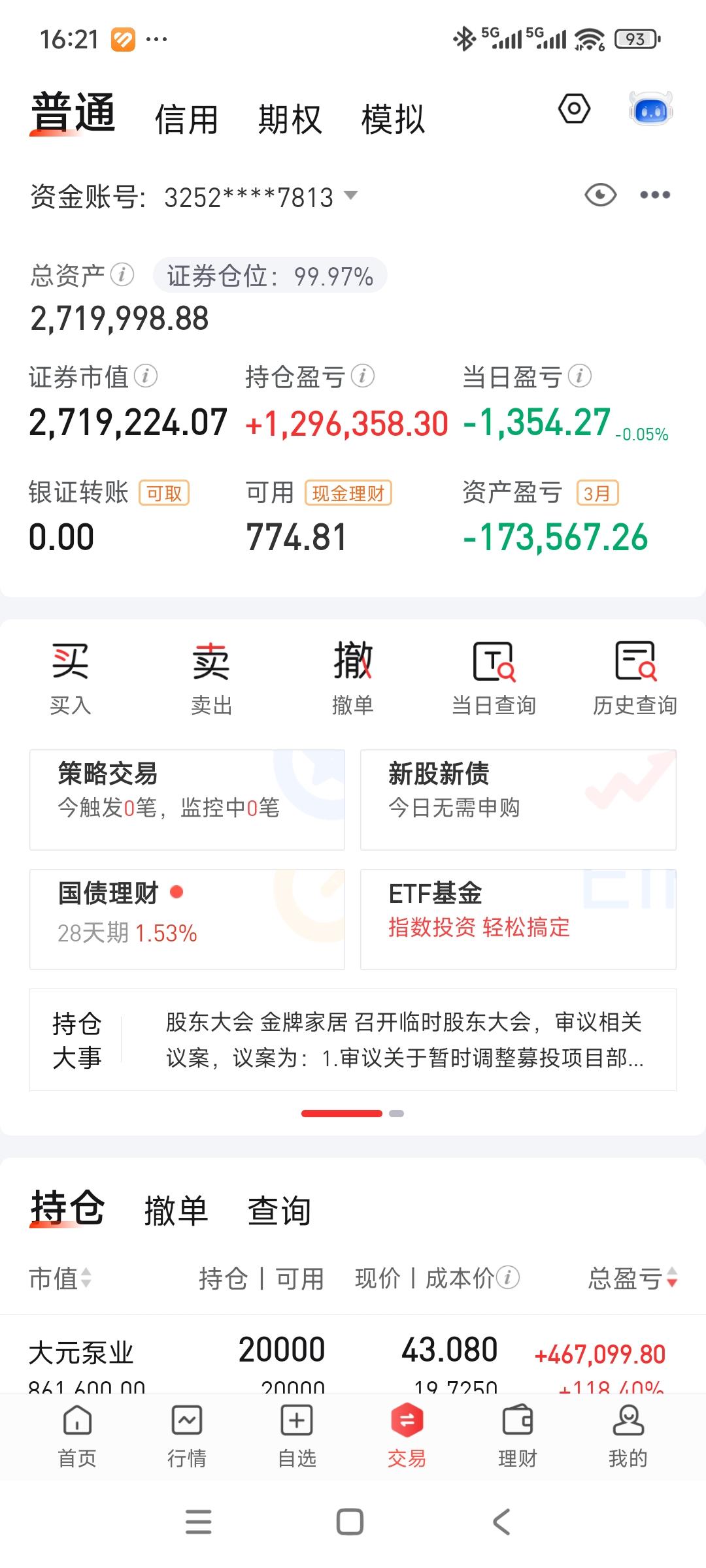 今天大元独绿,散户暴增的票的确磨人,账户没有跑赢大盘,勉强站上290