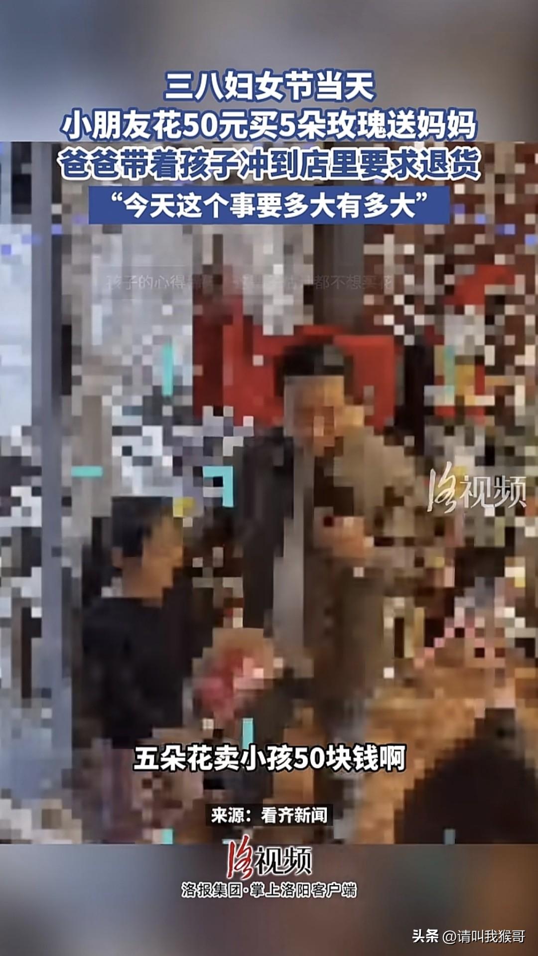 真不知道河南郑州这个爸爸心里是怎么想的,孩子在三八节当天花50块钱给妈妈买了5朵玫瑰,爸爸在知道价格后竟带着孩子到花店退货。首先节日当天10元一朵的玫瑰本身也不算贵,最主要是这是孩子对妈妈的一种爱的表现,爸爸的这种做法一下子伤了两个人的心,真是得不偿失。有网友评论说,十年前花店的玫瑰就卖10元一朵了,这个爸爸是有多久没给老婆买过花啊!你觉得爸爸的这种做法欠妥吗?