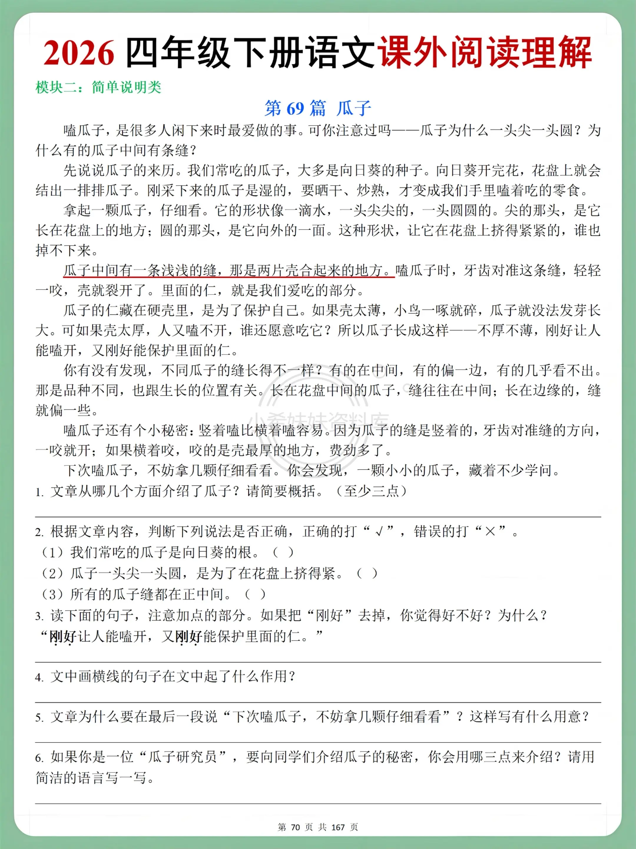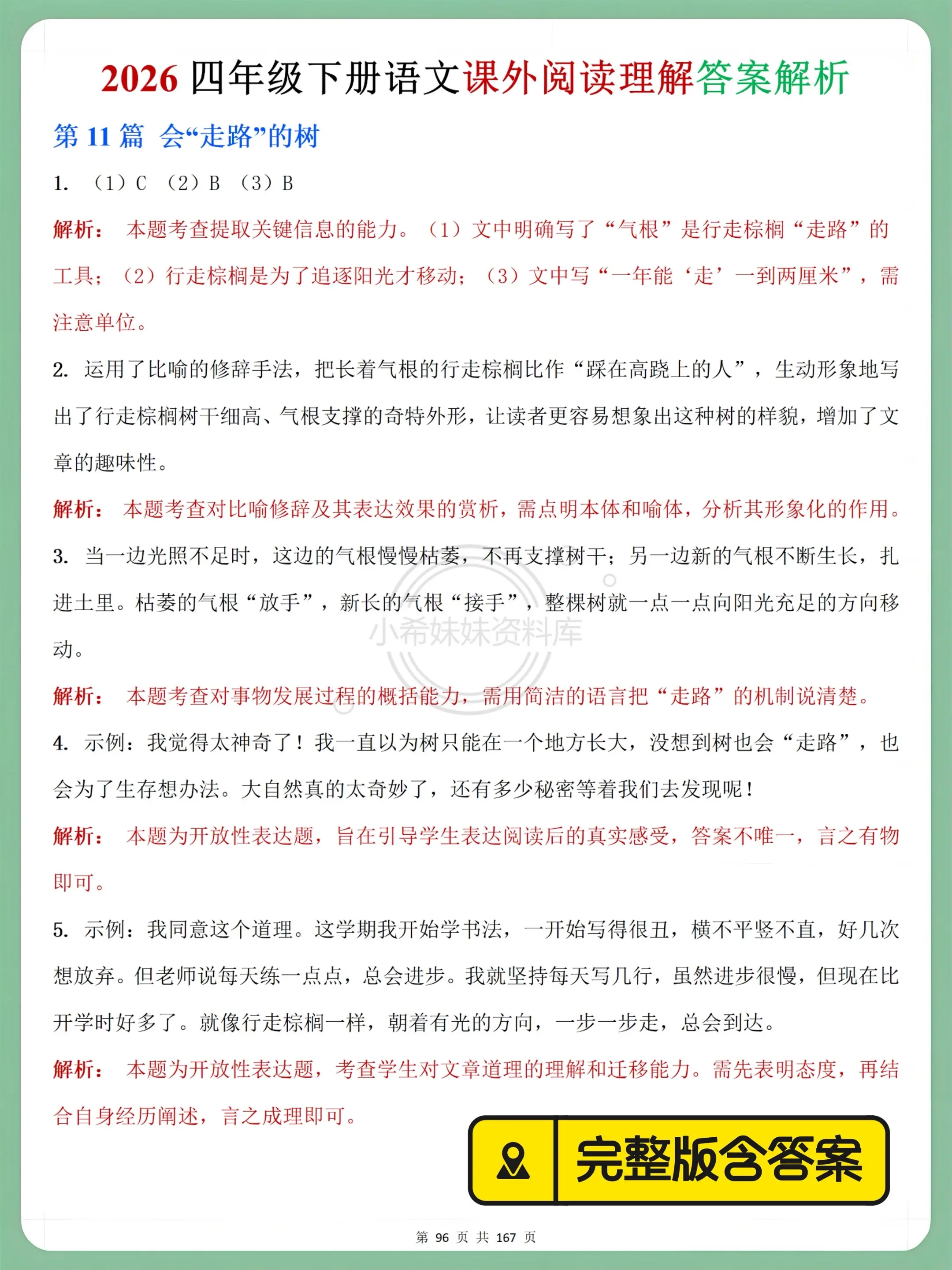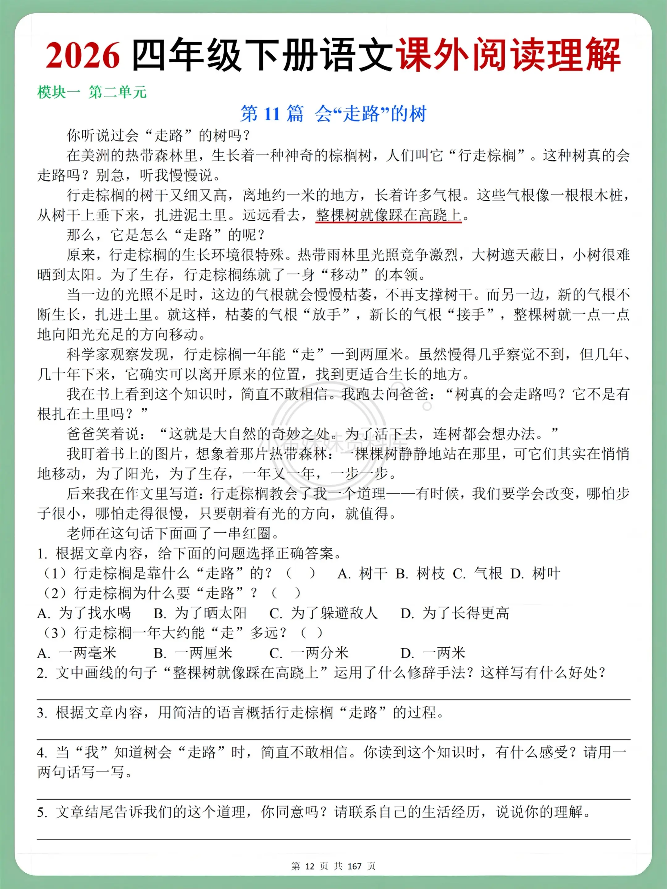 四年级语文下册课外阅读理解,吃透不丢分。四下阅读理解精准对接课堂进度,学完一单元练一单元,乡村生活、科普童话全覆盖📖 字词基础、句子赏析、答题思路全拆解,解析细到每道题,课后巩固不费妈~ 单元复习、随堂检测、知识点查漏都能用,刷完答题又快又准,阅读丢分不再愁! 想让孩子单元测拿高分,这套闭眼入,同步提分超省心✨