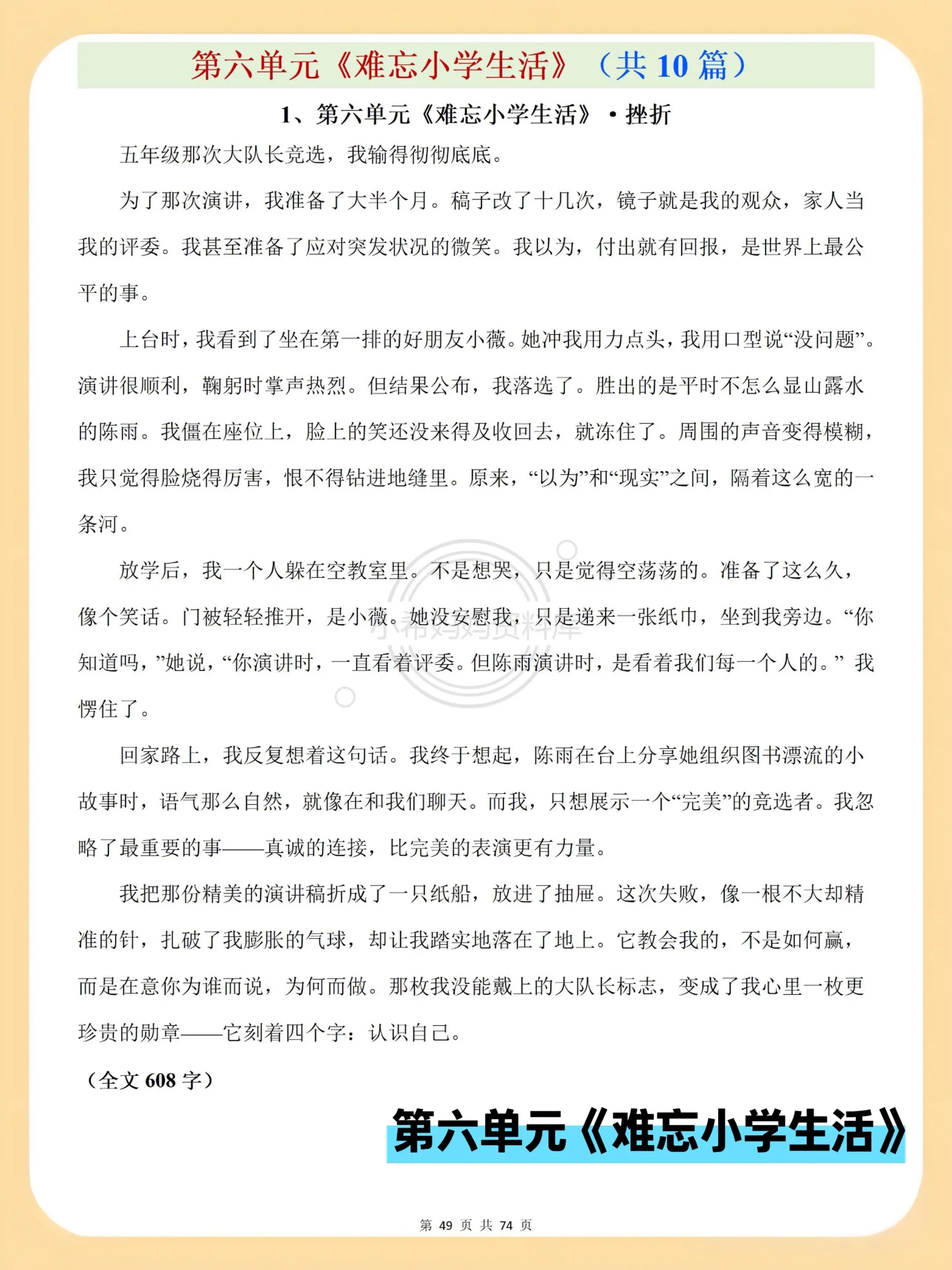 六下语文范文67篇 习作写作出手就是高分。六年级娃六下写作愁到挠头?这份宝藏范文直接救大命!