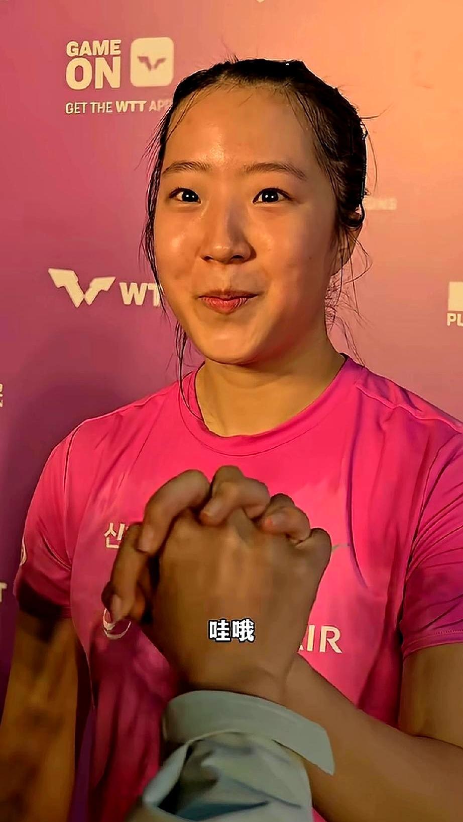 来重庆打比赛的韩国乒乓选手申裕斌,刚被本地记者套路了还笑。