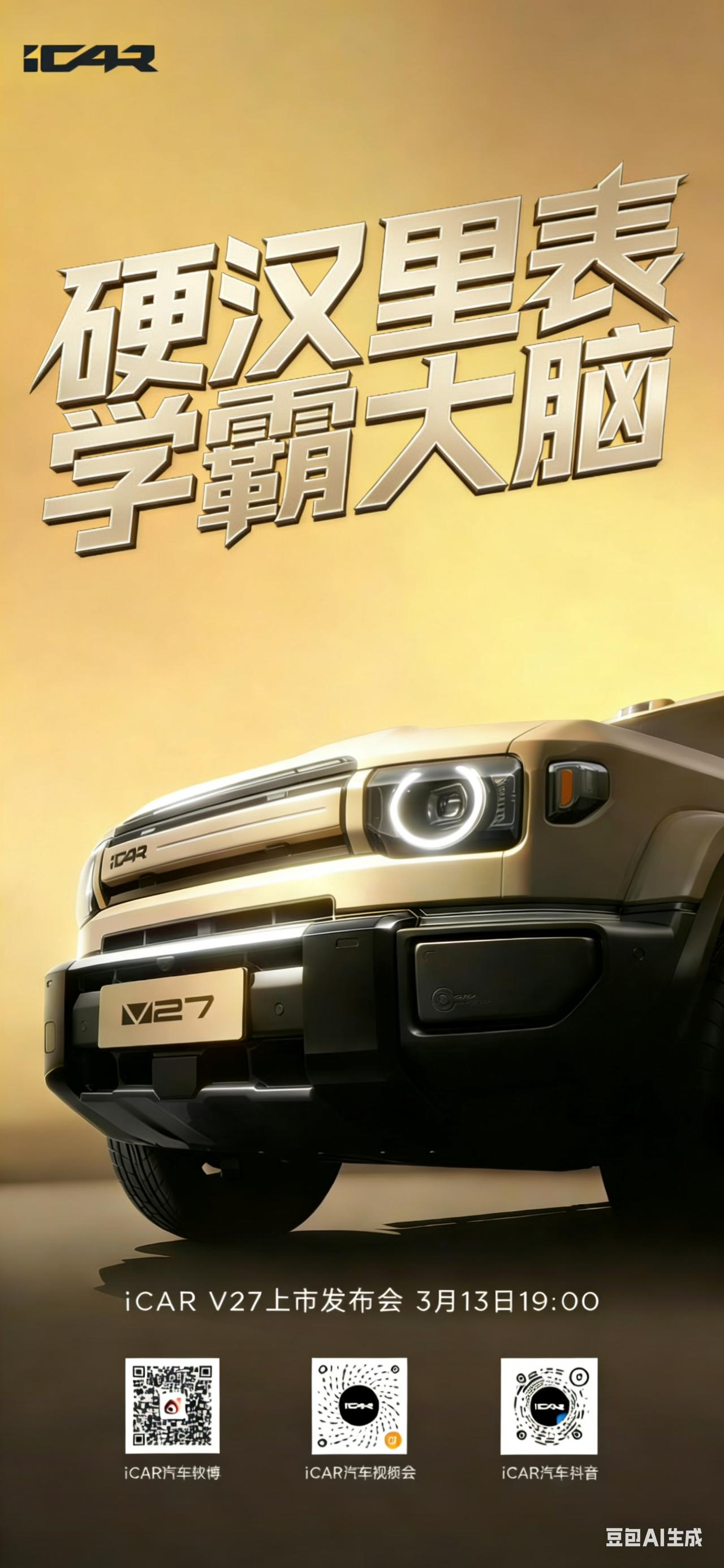 越野要胆子,也要脑子。 带地平线HSD端到端智驾方案的iCar V27今天上市。 目前看,这车火不火,定价需要苏峻的胆子。