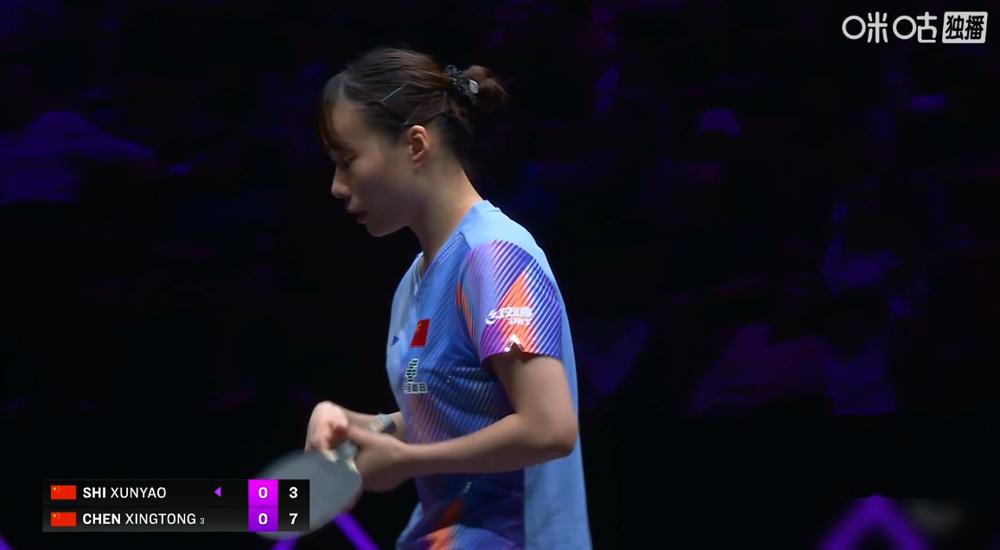 开局陈幸同速度压制,11-7拿下第一局。但石洵瑶眼神变了,气势猛涨。