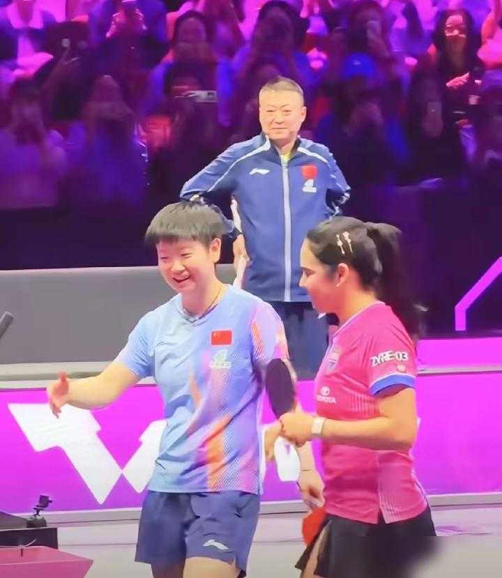 孙颖莎3-0横扫闺蜜,她转头就道歉:sorry sorry!这反差,炸裂! 25分钟,赛场上孙颖莎爆冲、抽击,11-5、11-7、11-5,干净利落横扫迪亚兹。第二局马琳一个眼神,她连追8分逆转,那股杀气,你以为是仇人相见? 球一落地,她甜笑扑上去牵手,连说三句“sorry”,主动拉着迪亚兹和教练马琳一起致意。马琳在旁边,那姨母笑,像在看自家两个宝贝闺女,你就知道这友情多瓷实。 不是你死我活的战火,而是惺惺相惜的切磋。她赢得了比赛,更赢得了人心!这才是真正的王者风范!