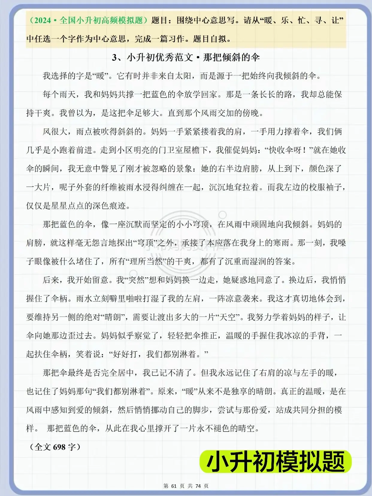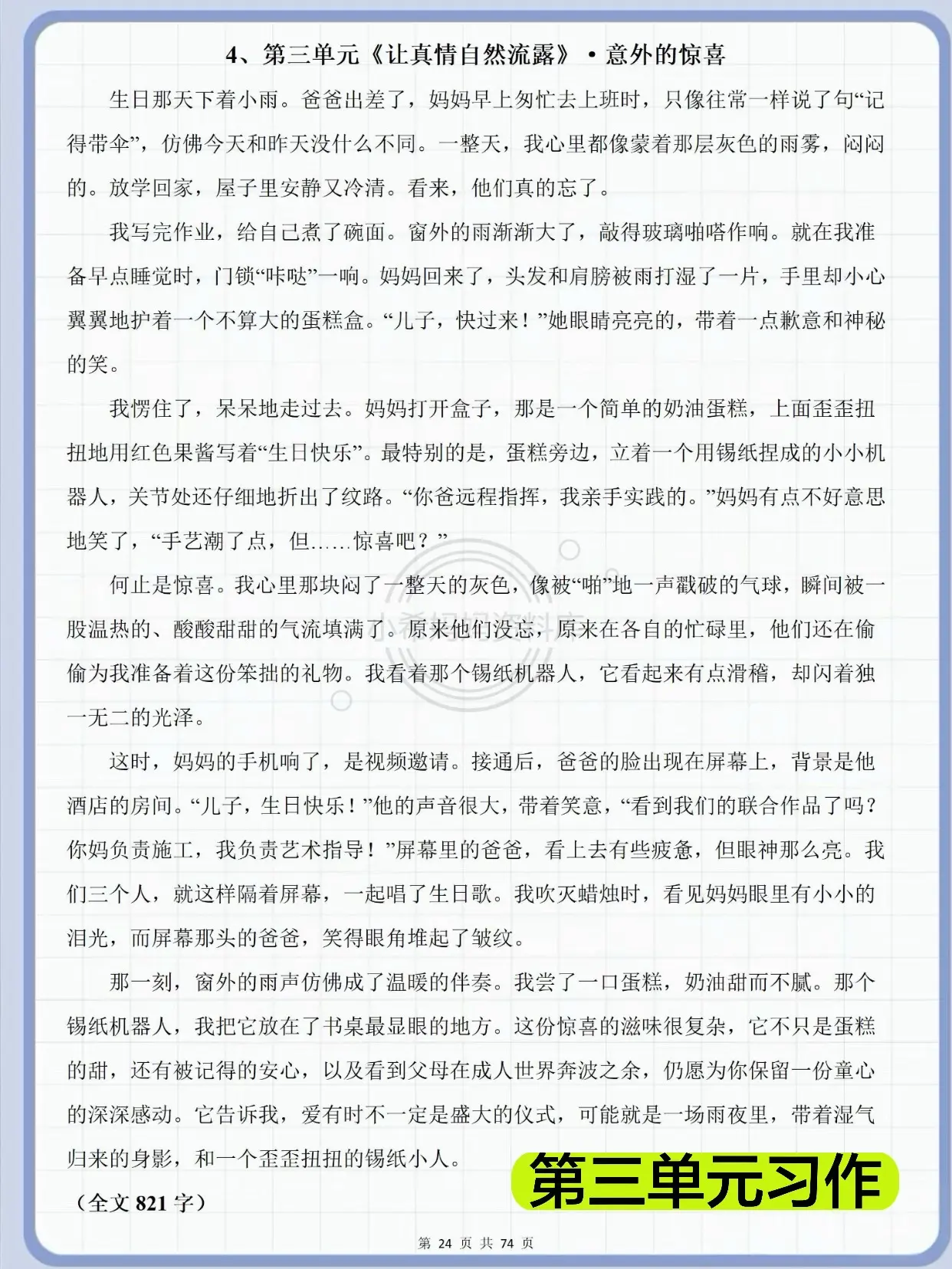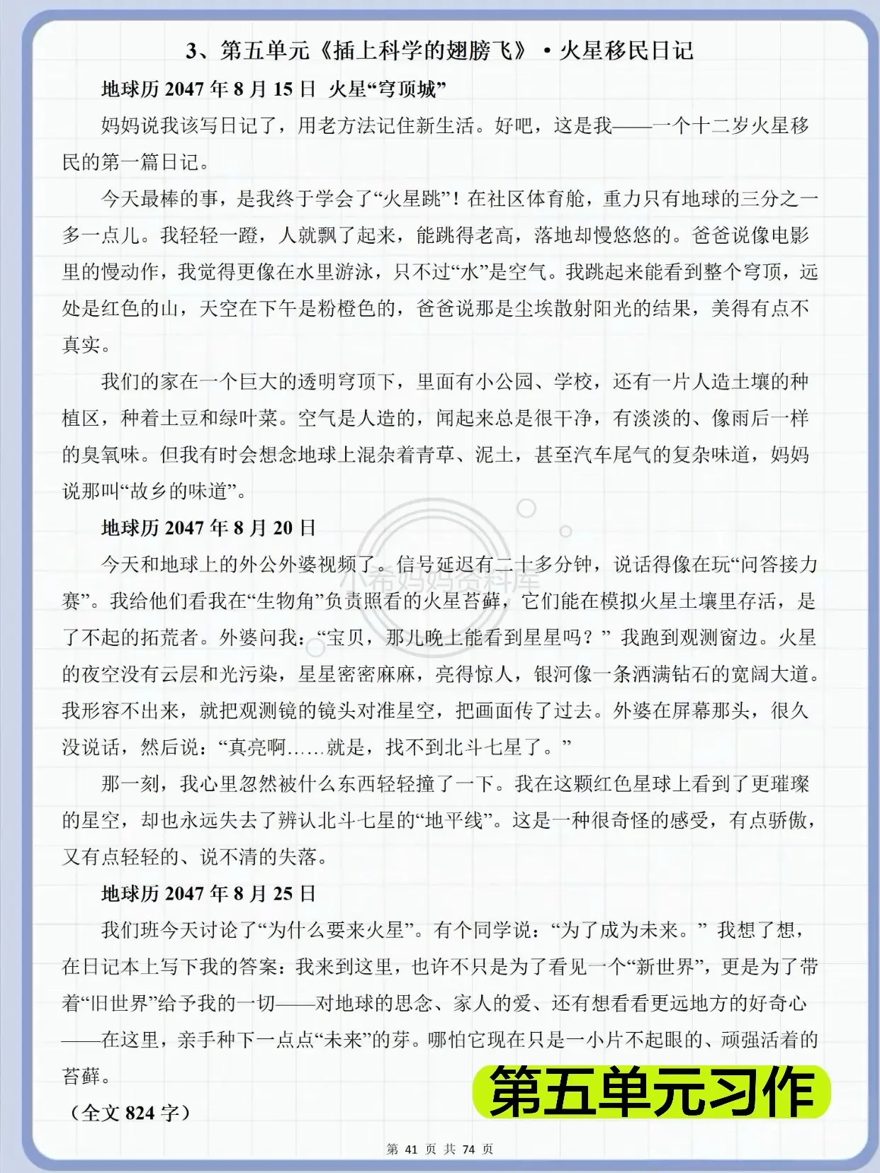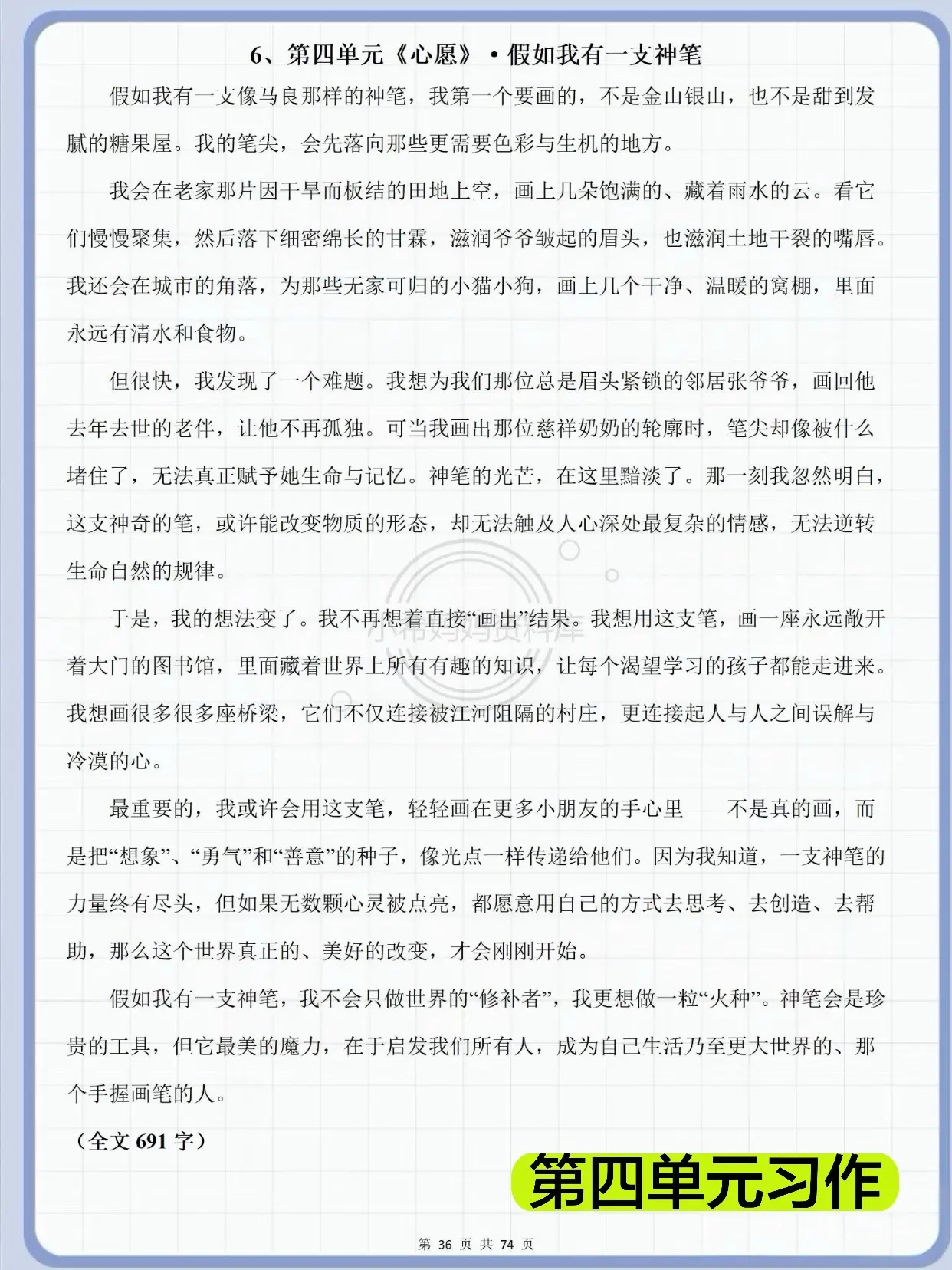 六年级下册作文|67篇范文直接套用✅。六年级语文写作不用慌!这套全单元范文太省心了! 覆盖家乡的风俗、写作品梗概、让真情自然流露、心愿、插上科学的翅膀飞、难忘小学生活6大单元习作,每篇都有思路+范文,孩子一看就懂、一学就会。 不管是写风俗、写情感、写科幻、写毕业,都能找到对应模板,细节足、感情真,考试直接拿高分。 还有小升初必备范文+期末冲刺好文,日常练笔、考前突击、积累素材全都够用,家长闭眼存,孩子写作稳提升!