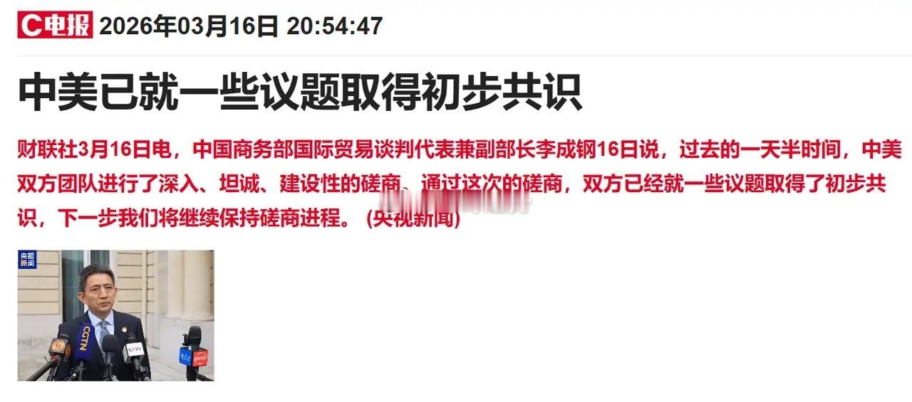 虽然没有公布最终的定论,但是初步共识说明谈判有进展,不过还有一些细节可能要后续才会落实敲定;