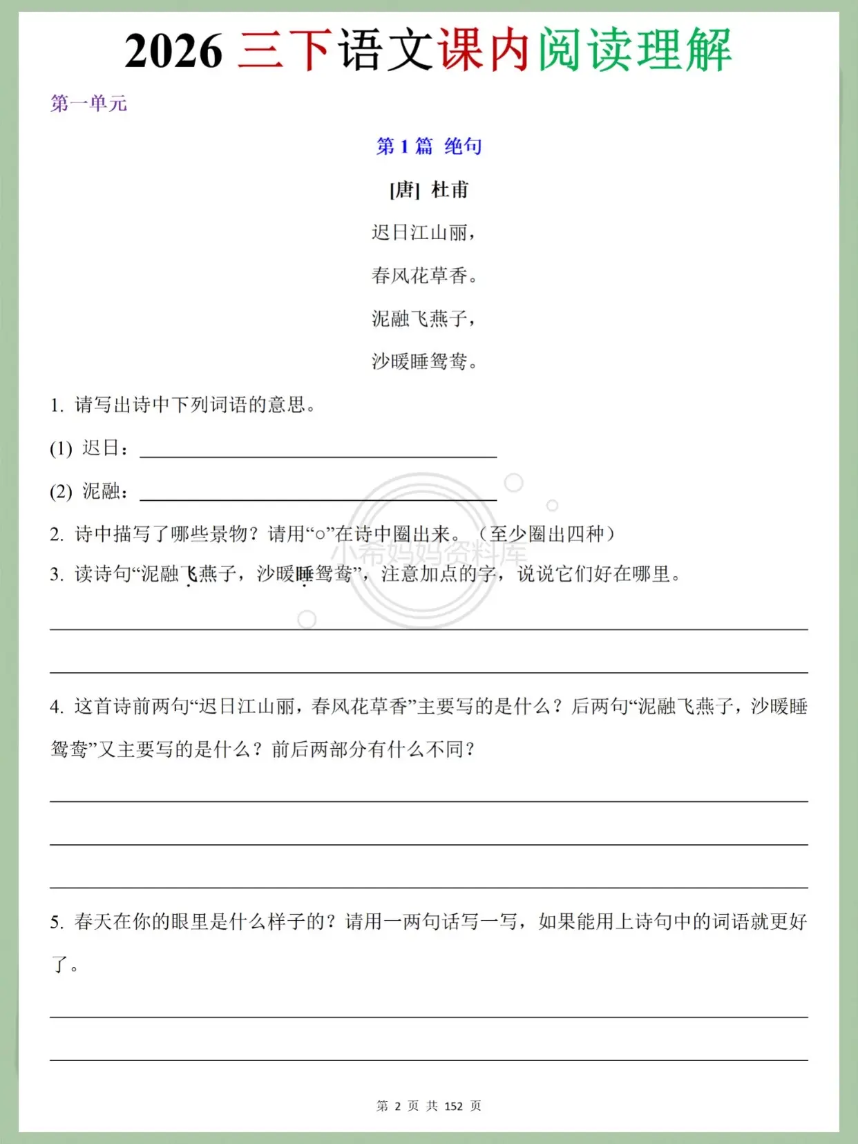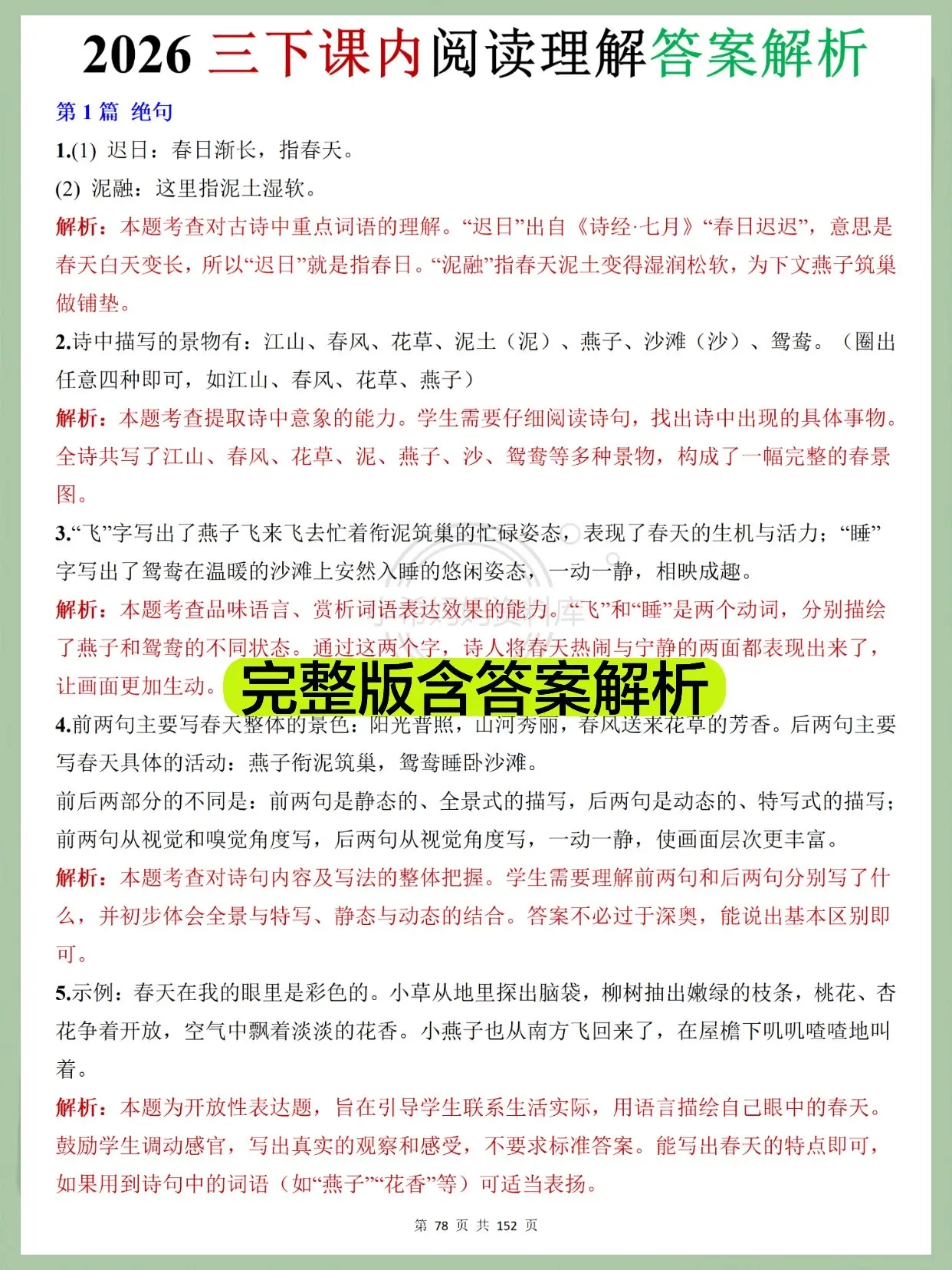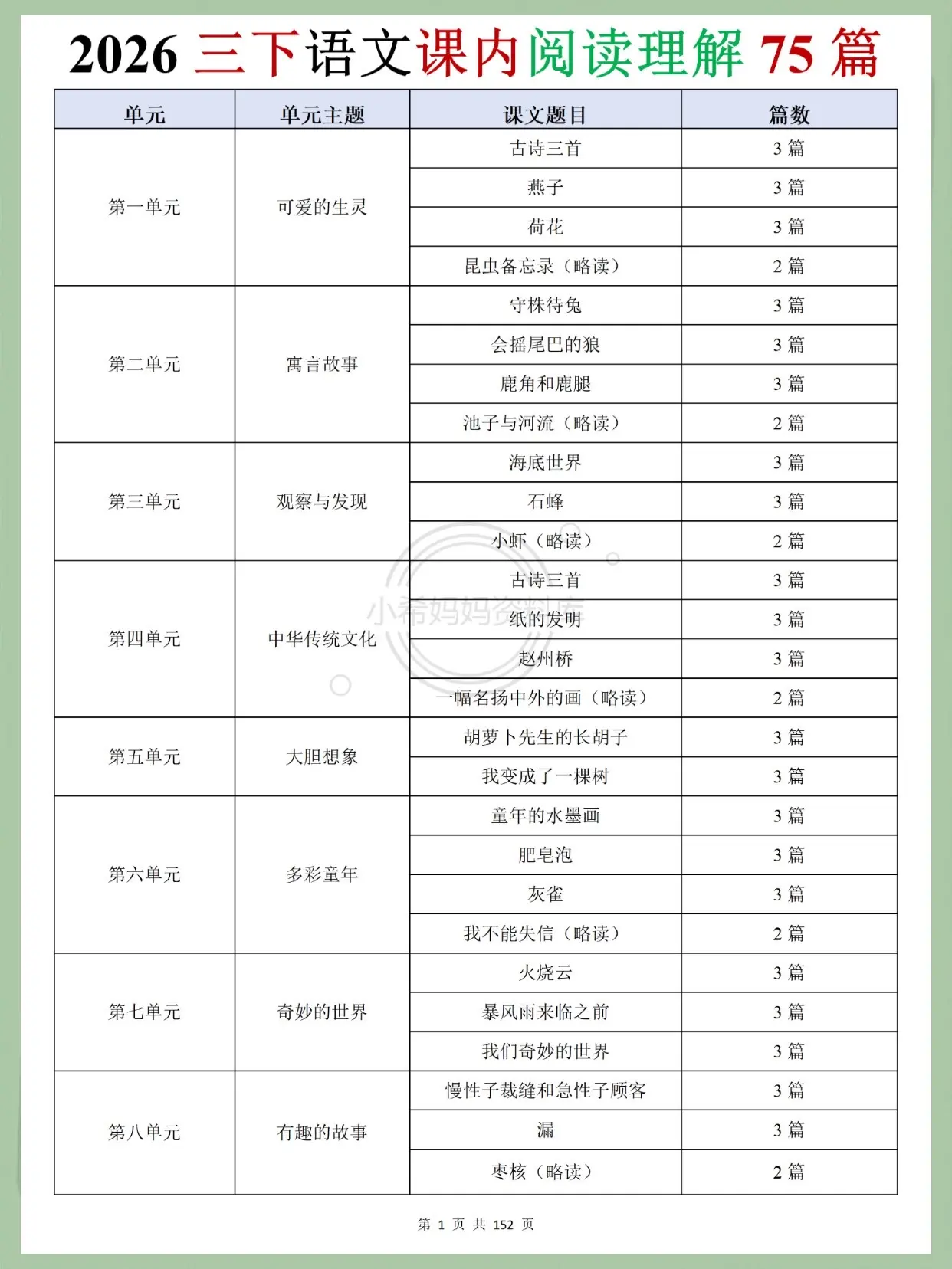 2026三下语文课内阅读|学霸同款资料!挖到宝啦!2026人教版三下语文课内阅读理解太实用了✨ 全教材8单元同步,75篇精读+略读课文全覆盖,从古诗、寓言到童话,每篇都带详细答案解析,基础题、赏析题、拓展题一网打尽~ 孩子预习复习能用,家长辅导直接抄作业,不用自己找题找答案,紧扣教材考点,提分超省心!