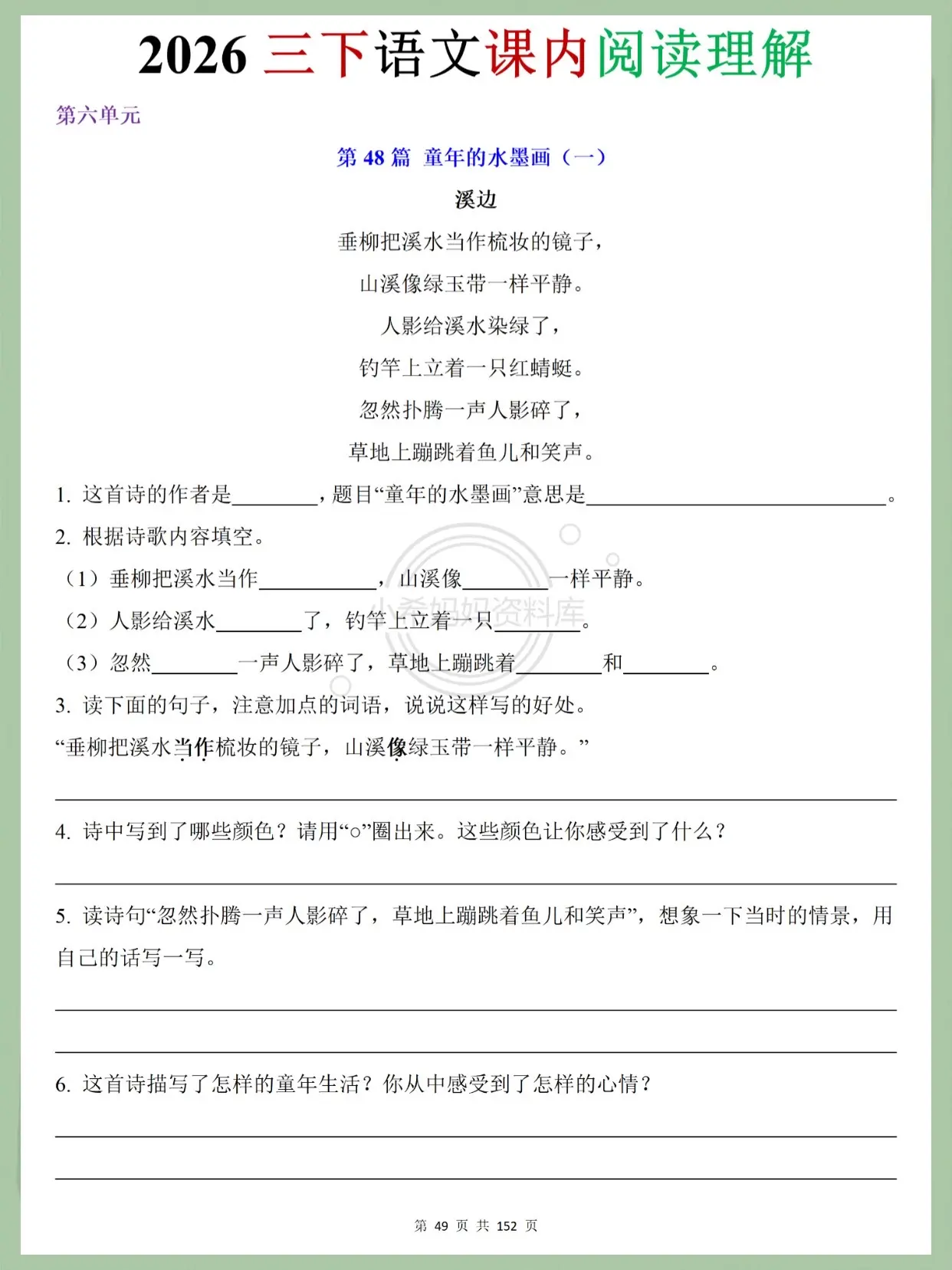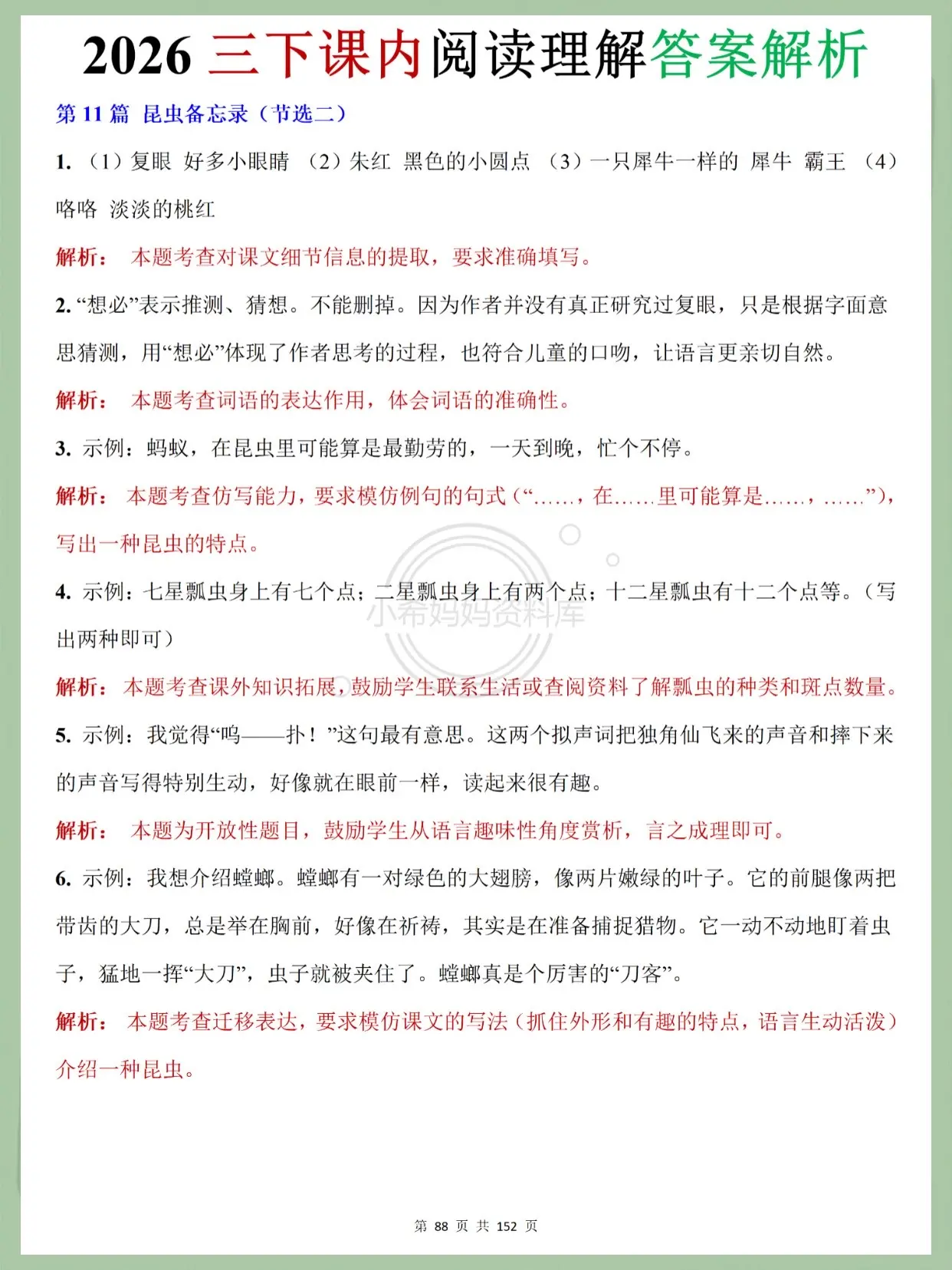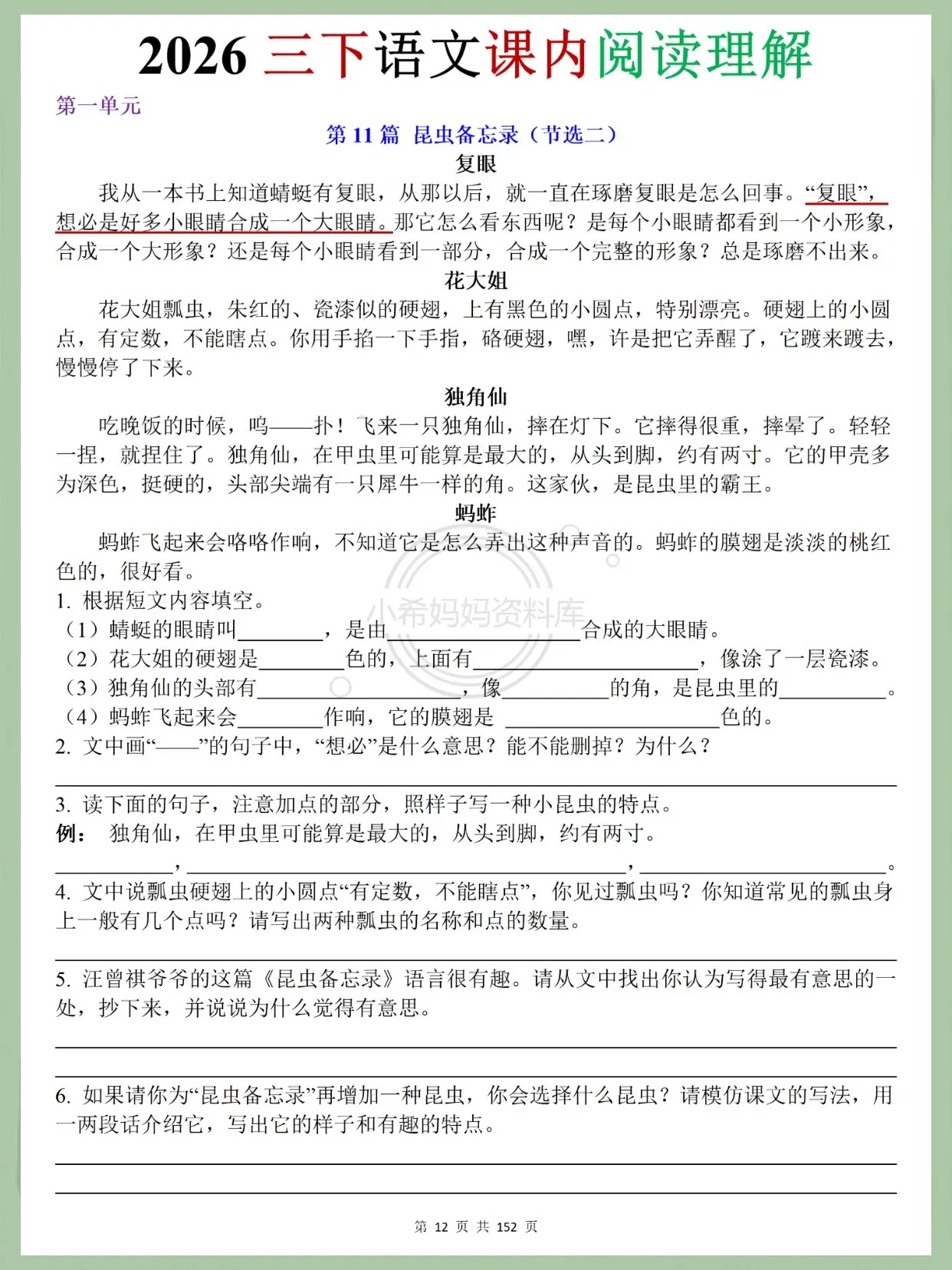 2026三下语文课内阅读|学霸同款资料!挖到宝啦!2026人教版三下语...