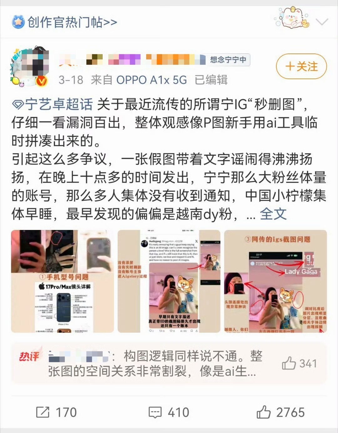 Giselle 亲自下场打假了宁艺卓粉丝所说的 ai 图🆘