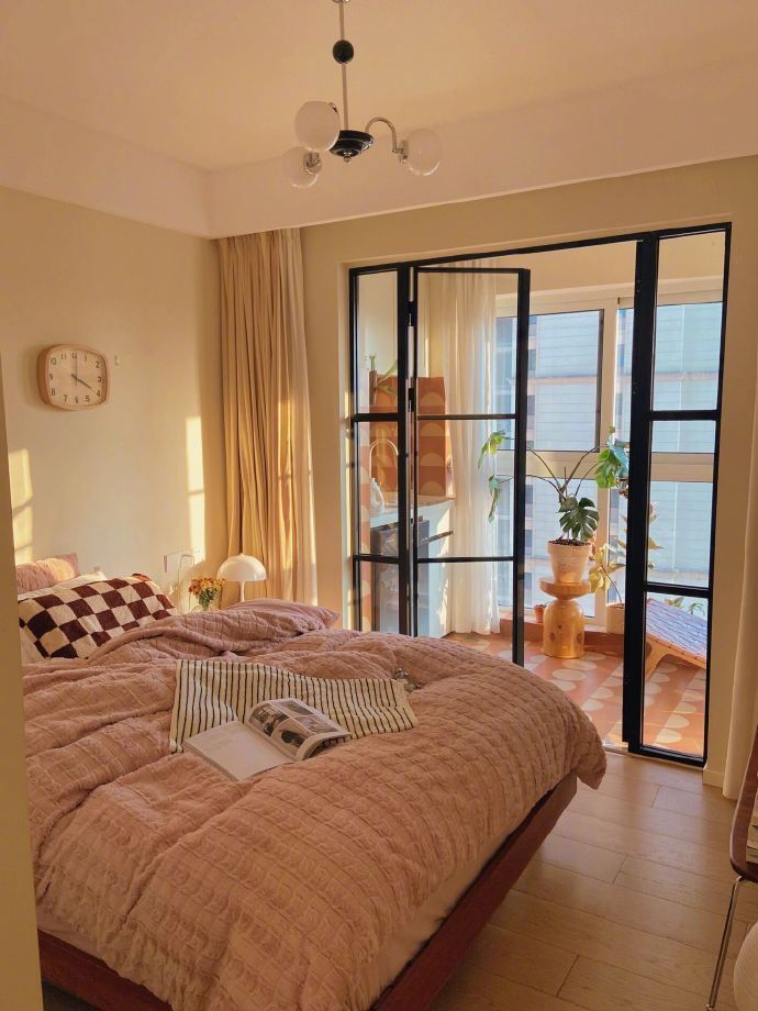 家居设计|美式乡村亚麻床单染上树影摇曳的斑驳,浴室墨绿护墙像潜入夏日森林