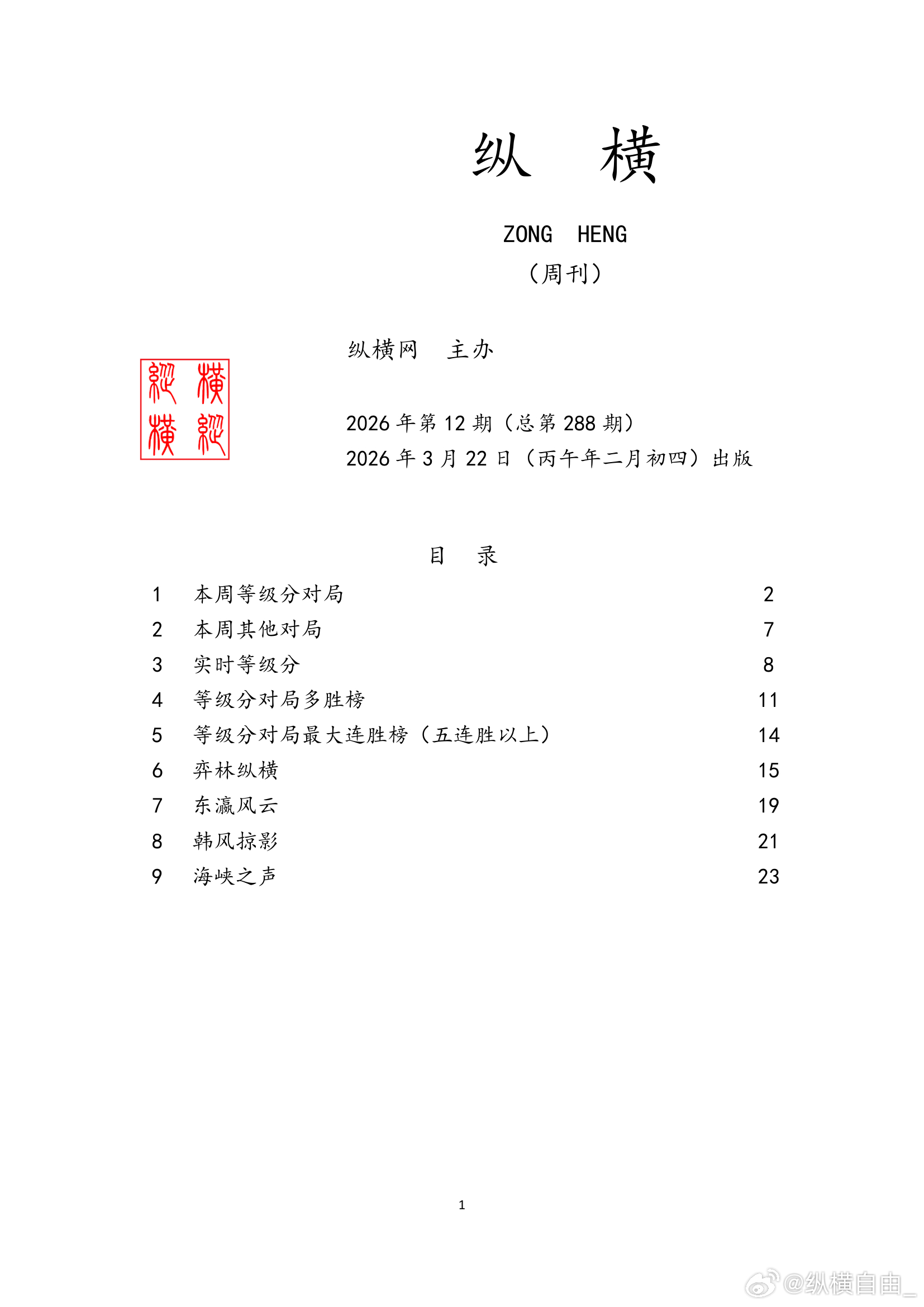 围棋历史 纵横周刊(2026-12)上