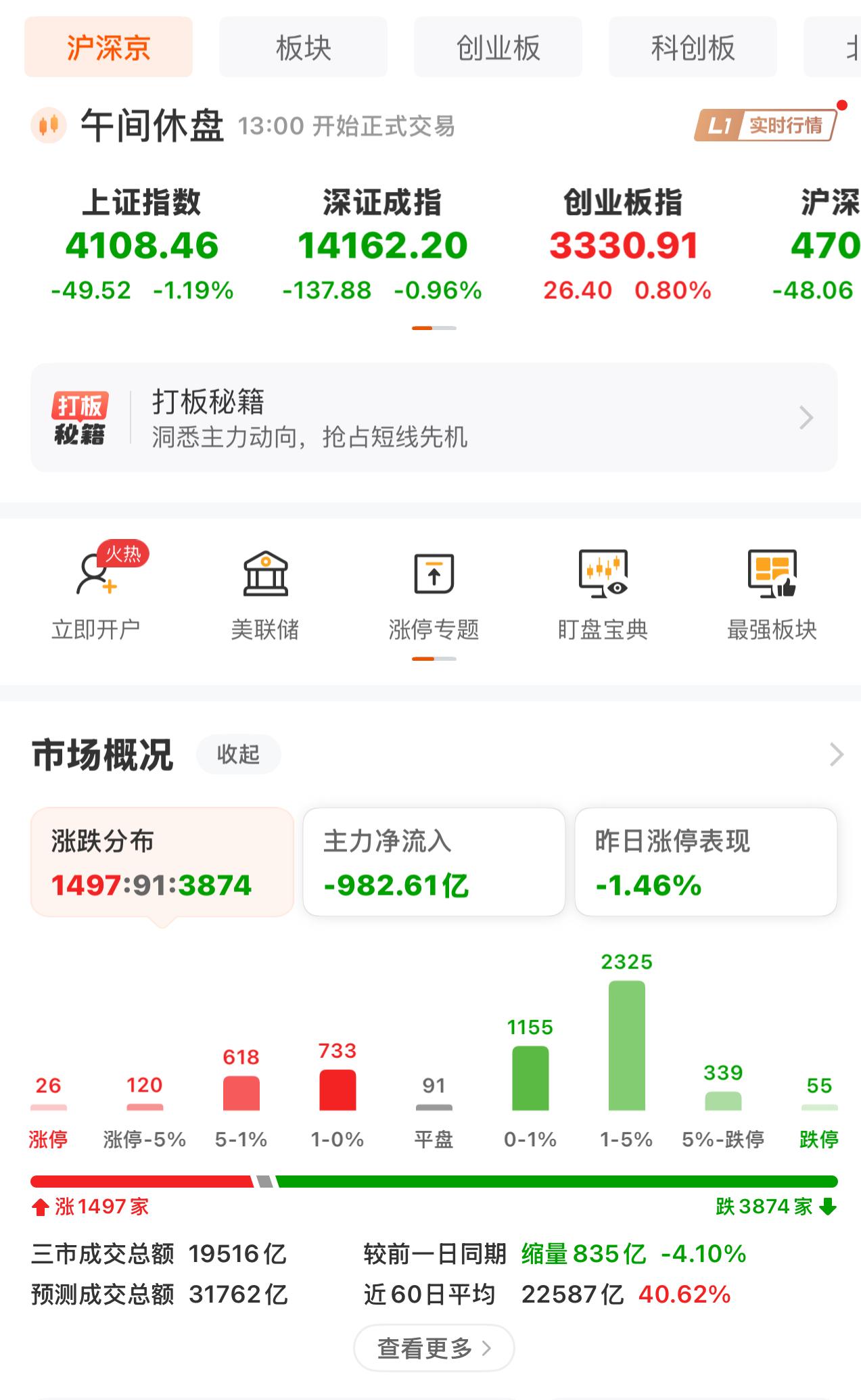 下跌个股数量3874只