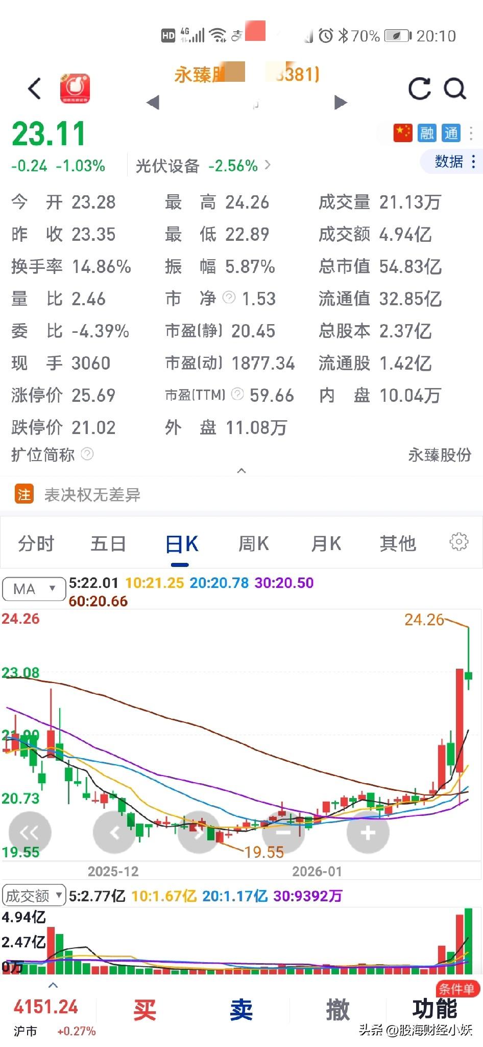 今日出:永臻*股份 入手:恒盛*能源 怎么买了这个票,太弱了,而且也是下降通道,