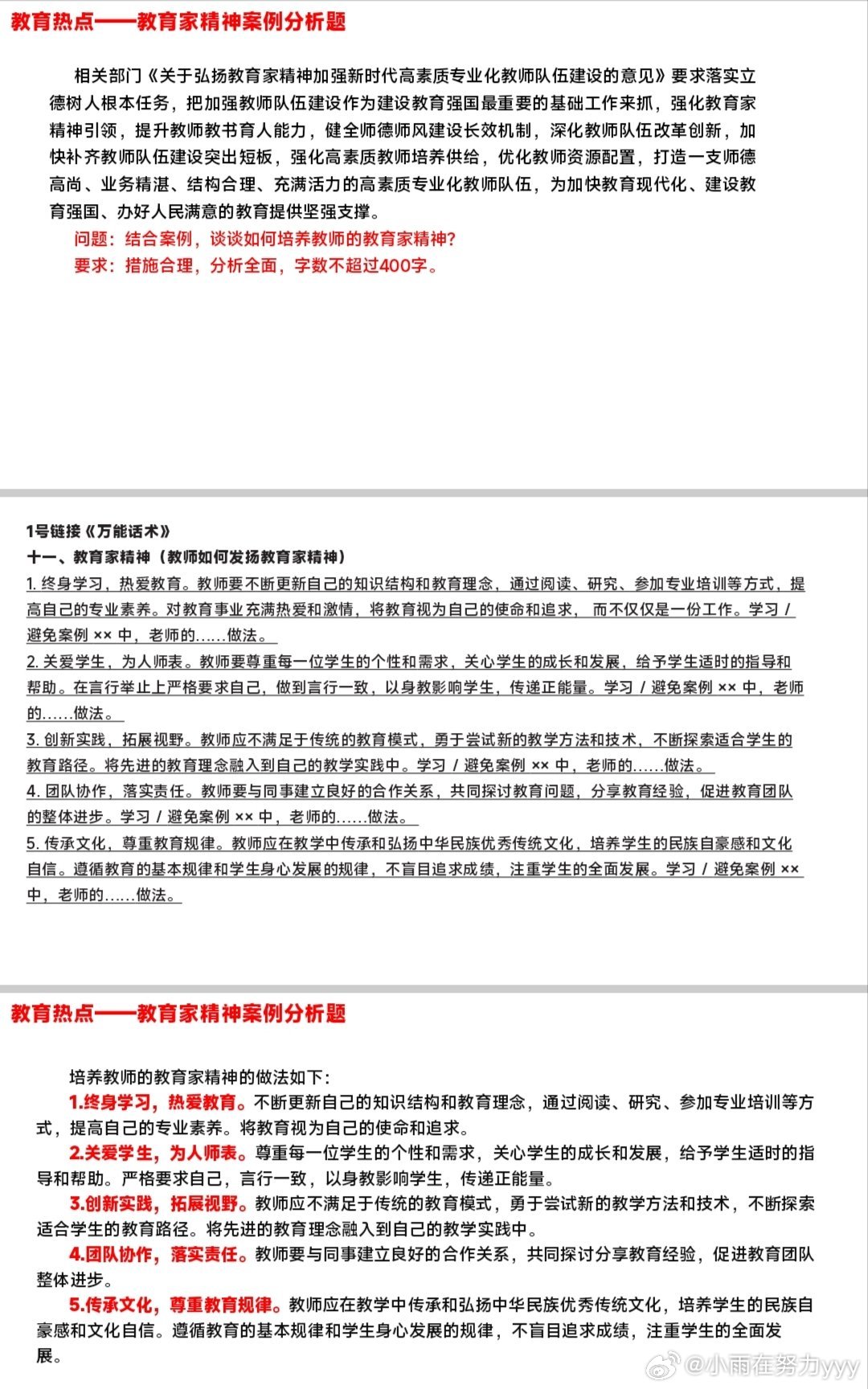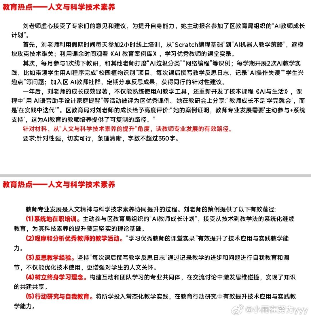 案例分析|1.为党育人,为国育才的辨析2.教育家精神3.教师专业发展路径4.AI