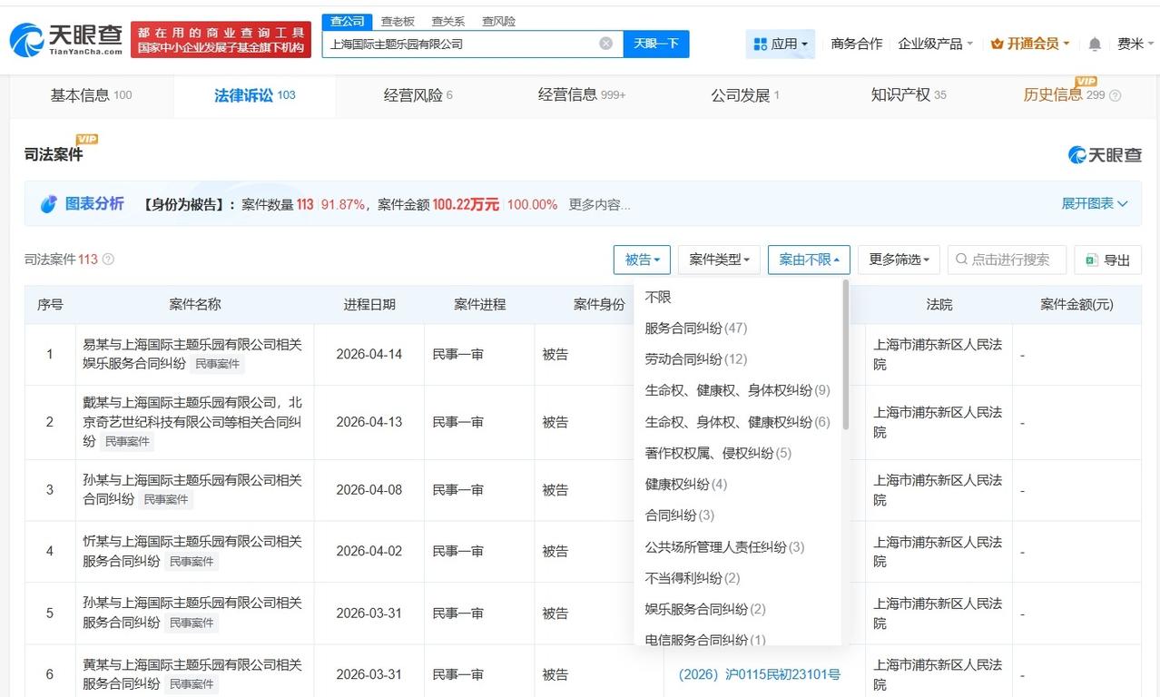 上海迪士尼涉及多起服务合同纠纷