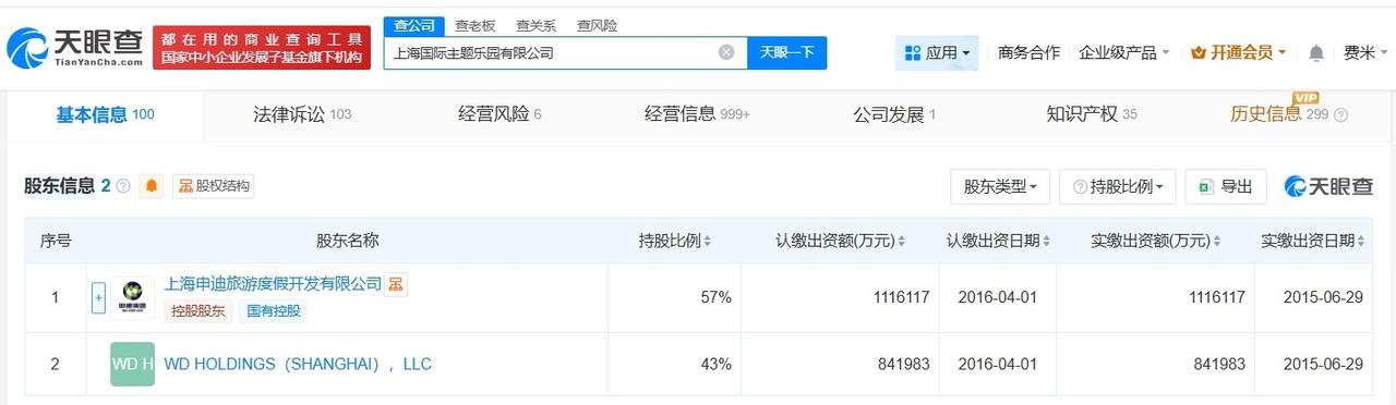 天眼查App显示,上海迪士尼度假区关联公司上海国际主题乐园有限公司成立于2011年4月,法定代表人为管韬萍,注册资本约195.8亿人民币,经营范围包括主题乐园的开发、建设和经营,食品经营,餐饮服务等,由上海申迪旅游度假开发有限公司、WD HOLDINGS(SHANGHAI),LLC共同持股。法律诉讼信息显示,该公司曾因服务合同纠纷、娱乐服务合同纠纷、合同纠纷等被起诉。