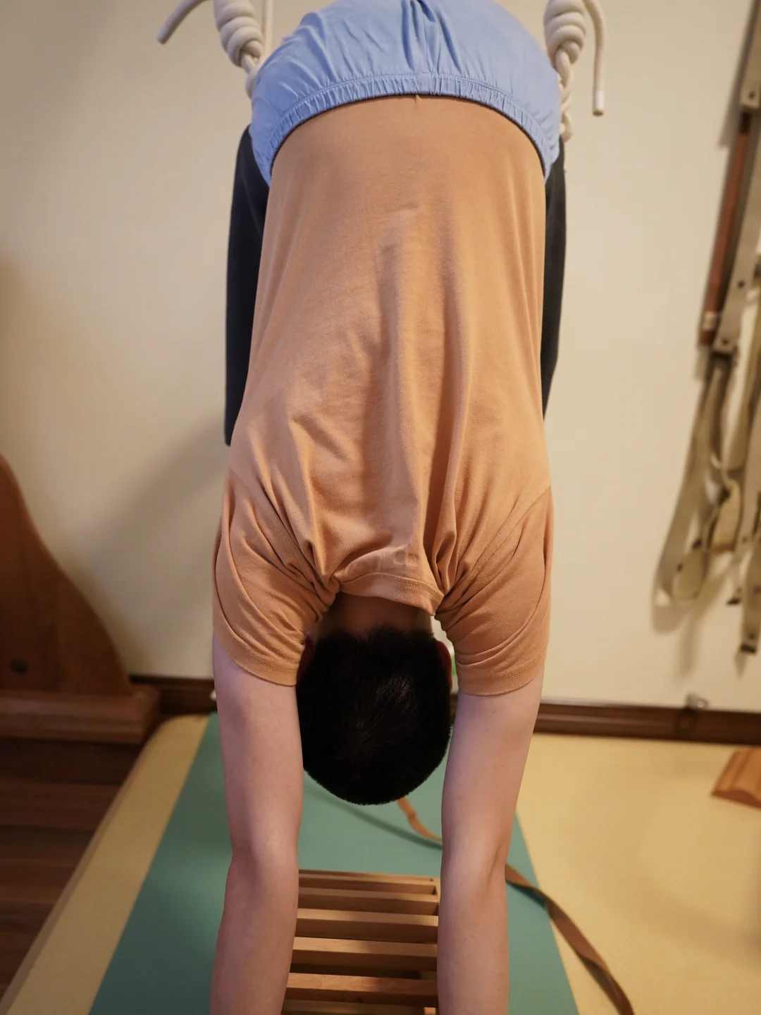 用这种方式做出来的前屈,从后侧看,我的腿根终于可以并拢了,且感觉上是很实在的并拢,前、后腹股沟都是拓宽的,臀的后外侧非常酸,整条腿后侧、内侧都有伸展,因为短,这种伸展是螺旋着走的。