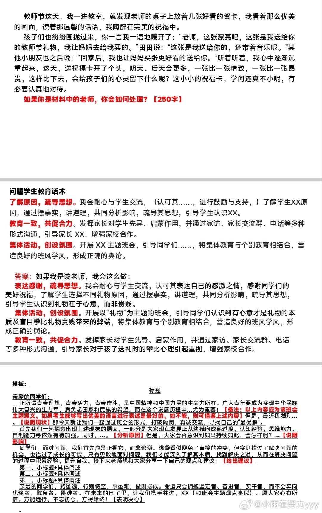 案例分析|1.班主任,老师的教育行为评价 2.回信