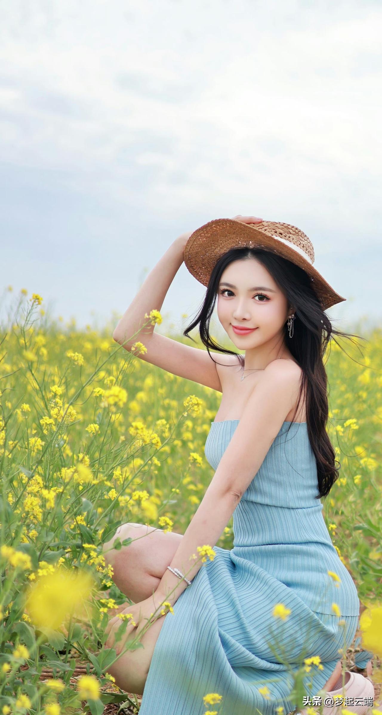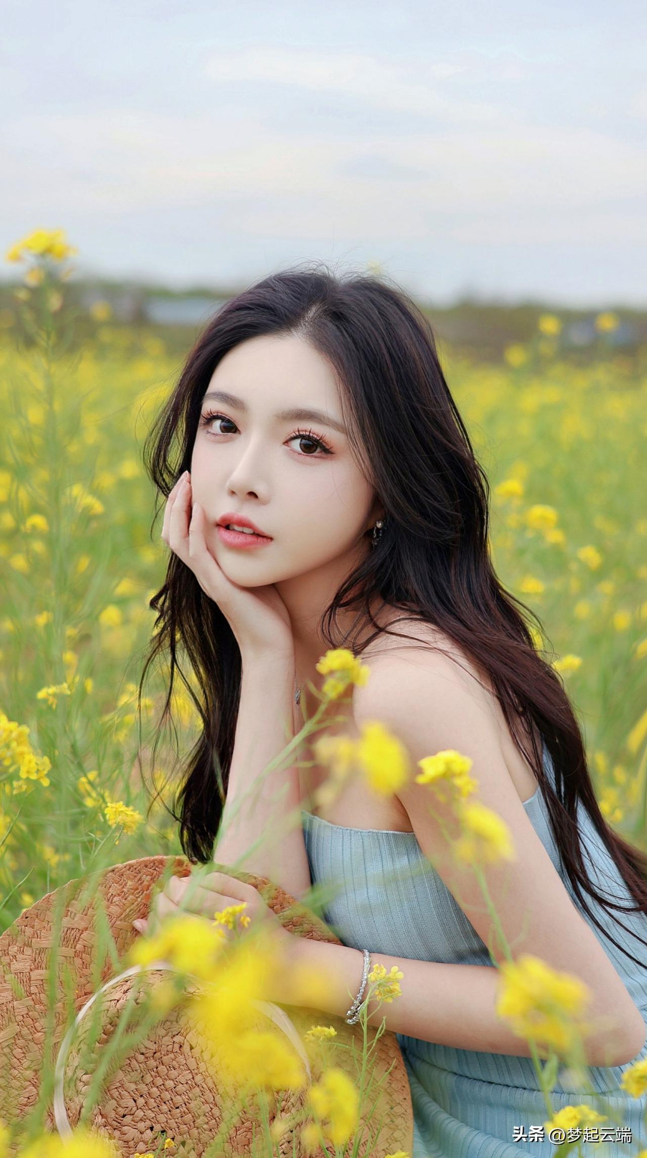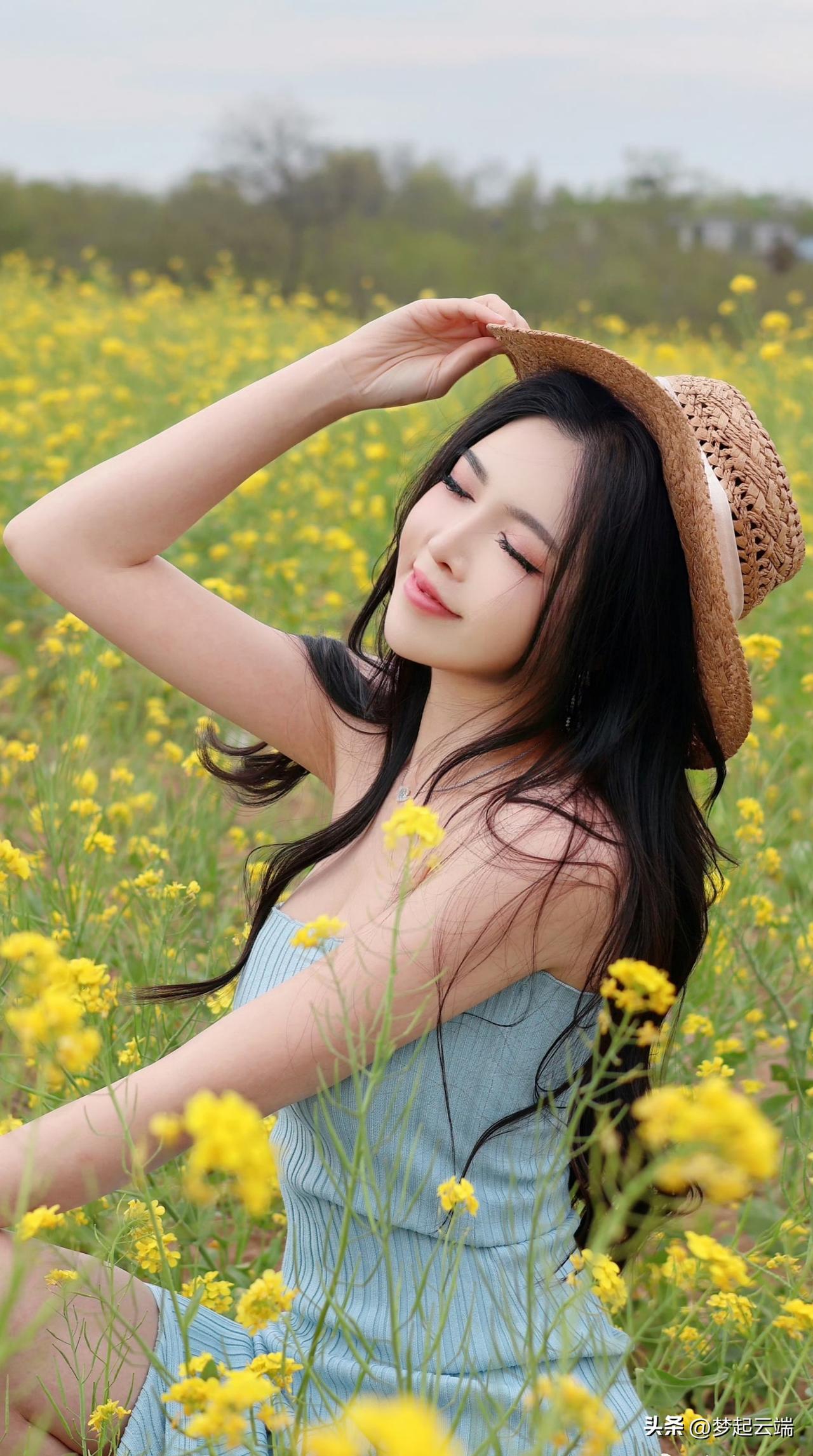 春日田野里的清新少女,秀发随风飘逸,笑容灿烂如阳光。🌸🌼🌻