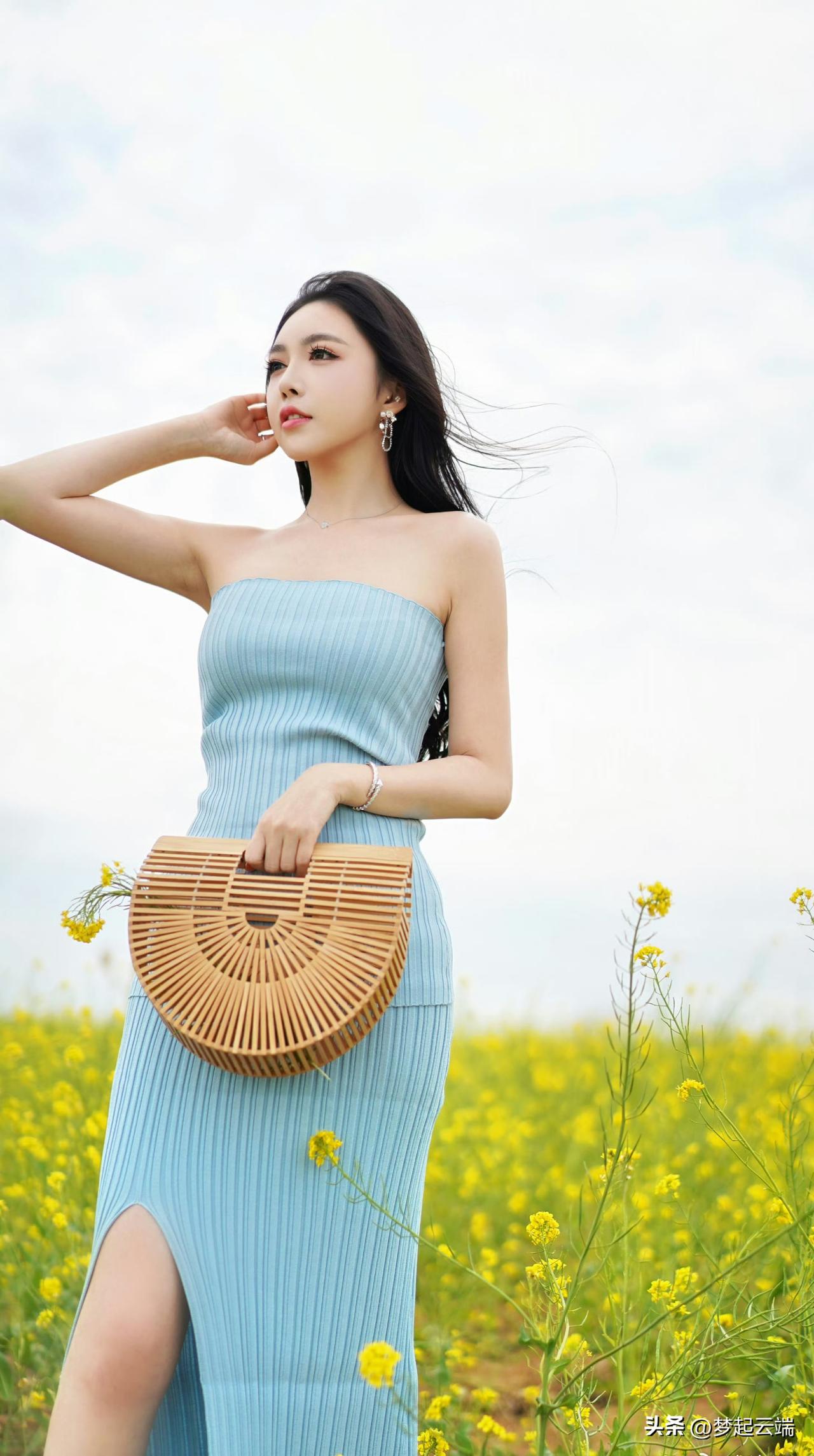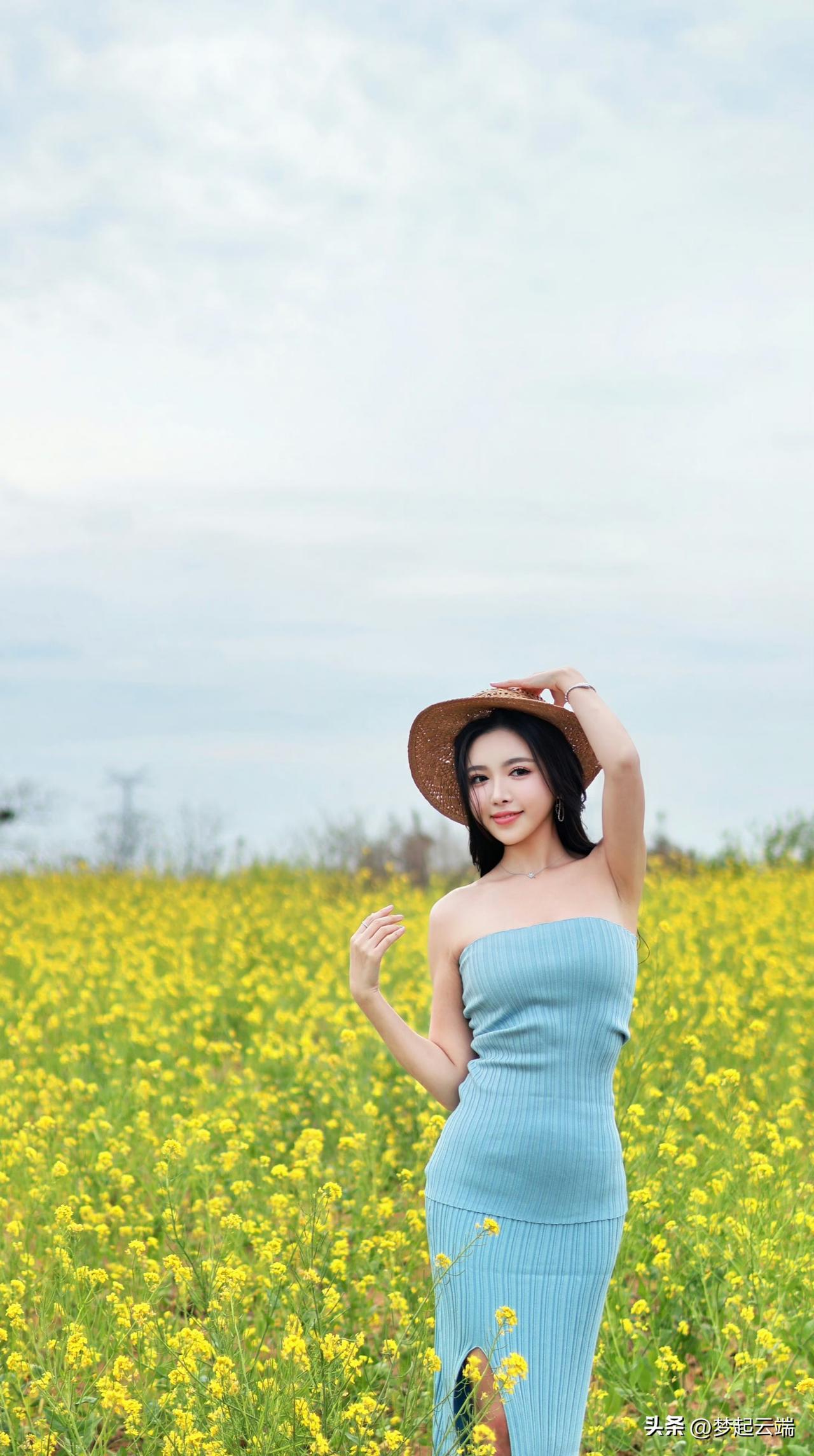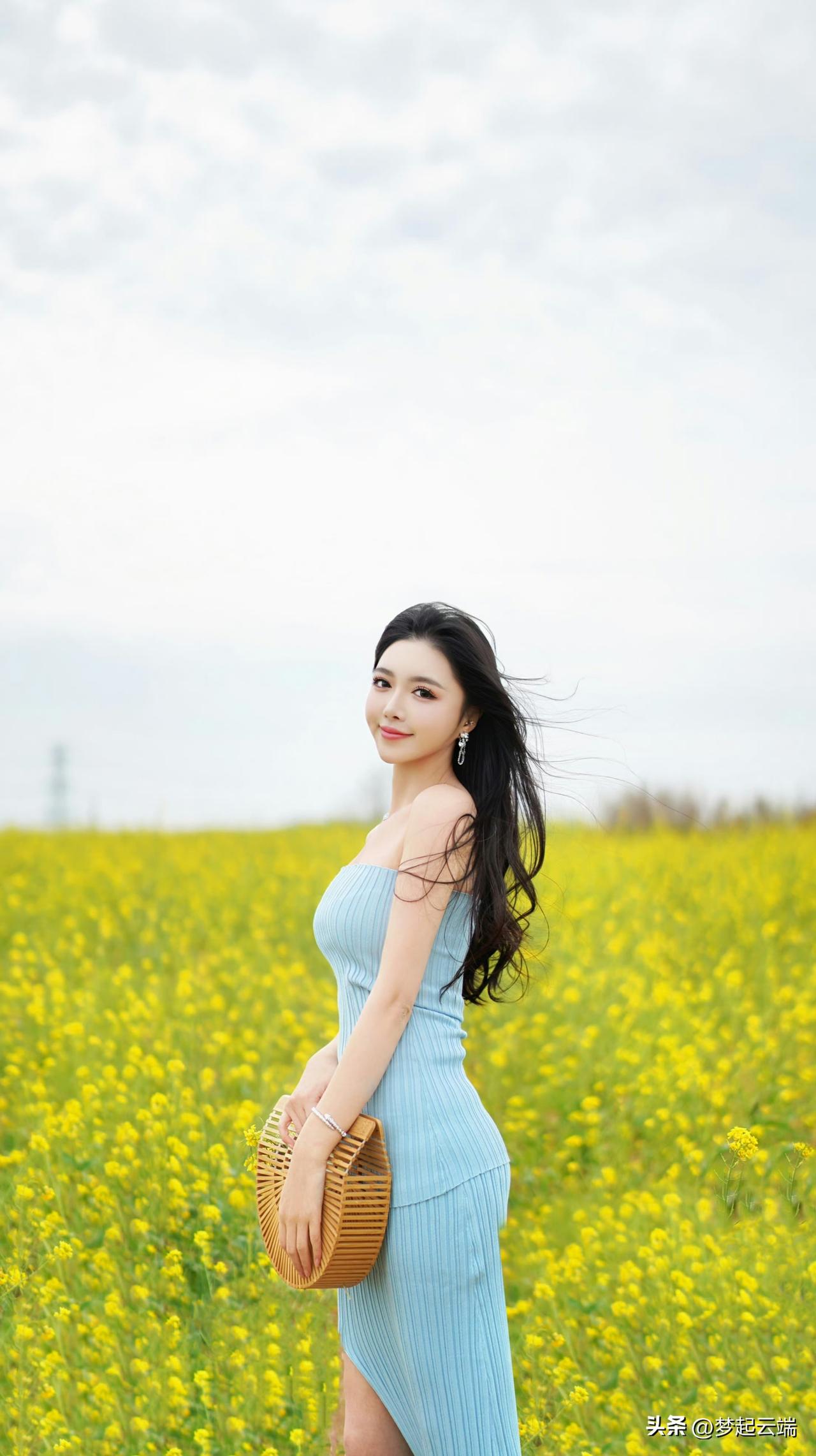 春日田野里的清新少女,秀发随风飘逸,笑容灿烂如阳光。🌸🌼🌻
