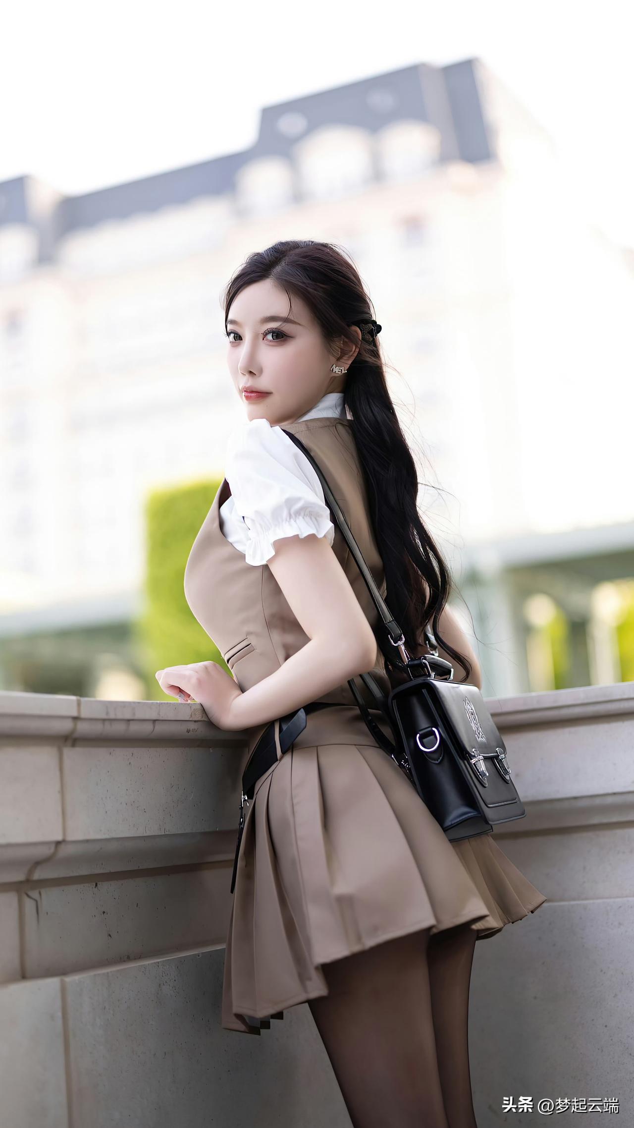 都市少女风,优雅黑丝搭配,时尚街拍。