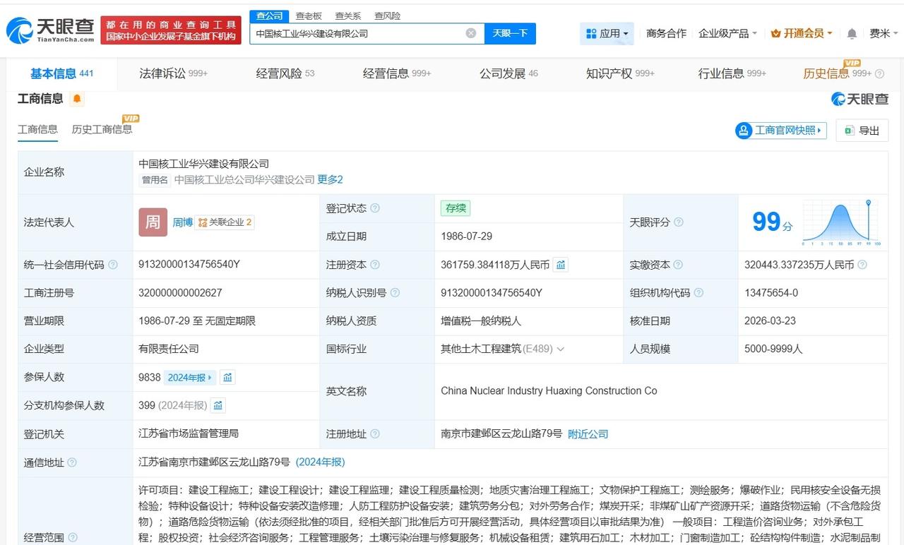 中国核建旗下华兴建设公司增资至36.2亿 增幅约12%