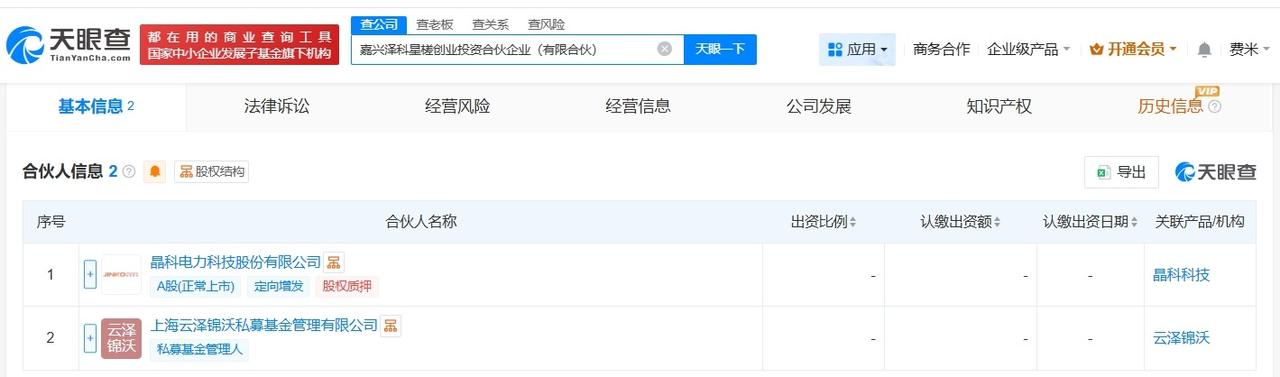 晶科科技等在嘉兴成立创业投资合伙企业 出资额2亿