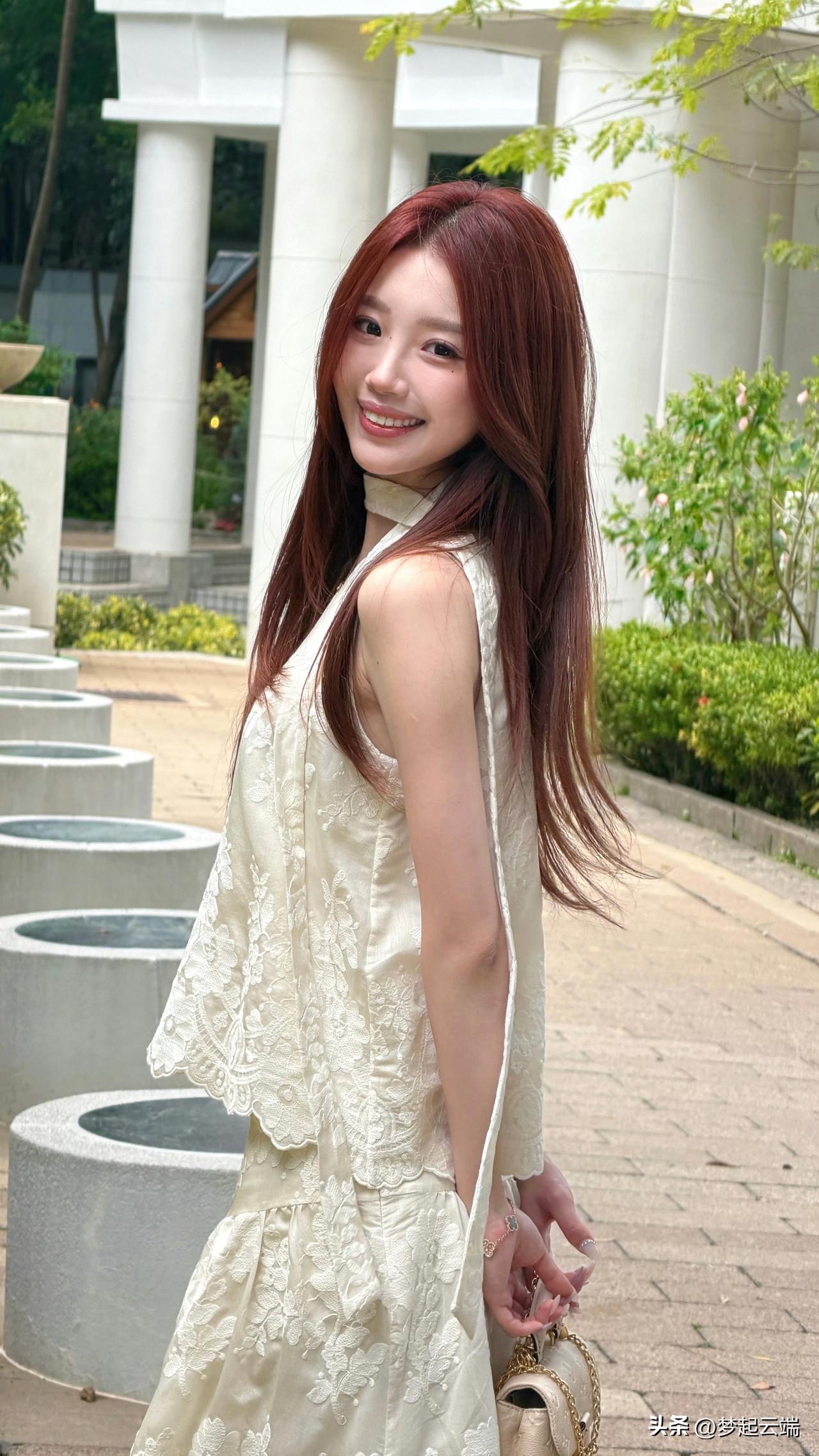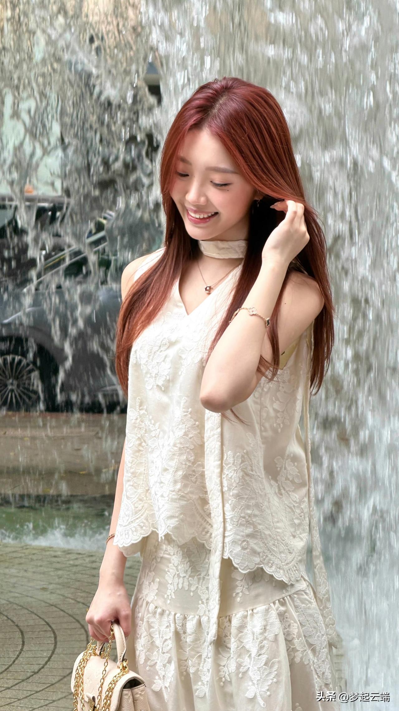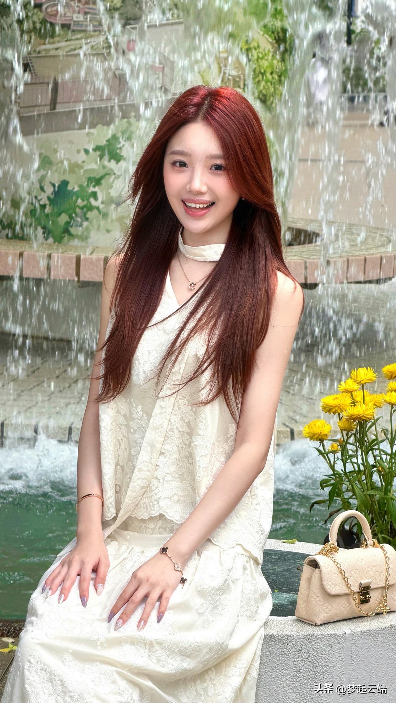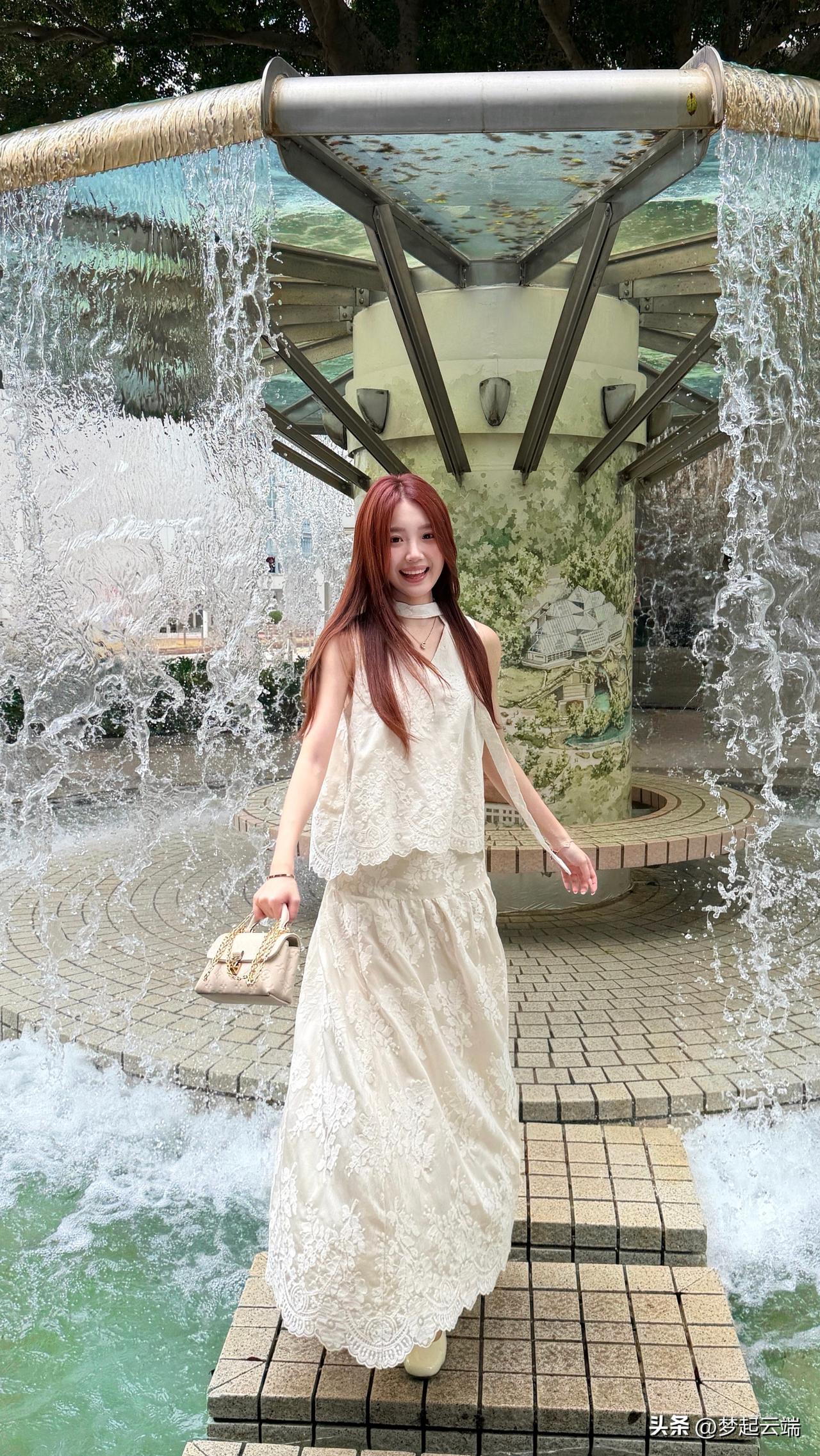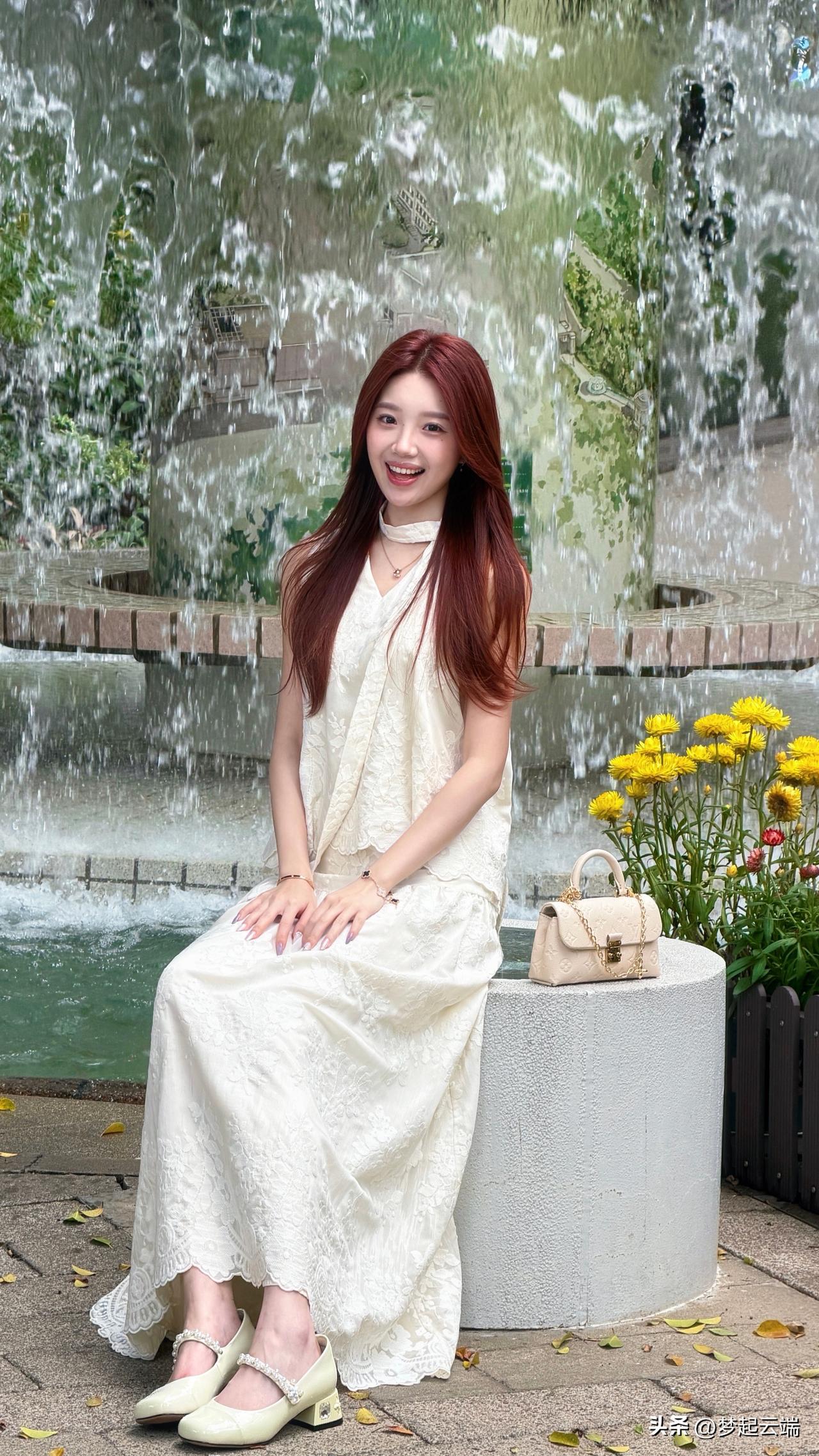 春日港城,水边少女,优雅白裙,自然妆容,享受宁静时光。