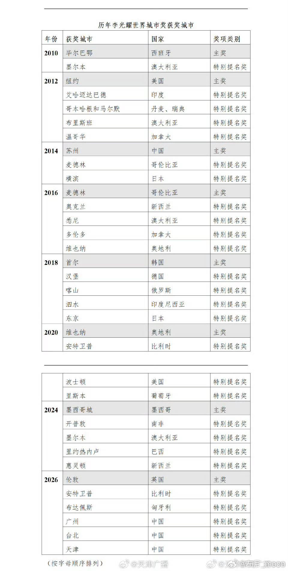 天津获李光耀世界城市奖特别提名奖