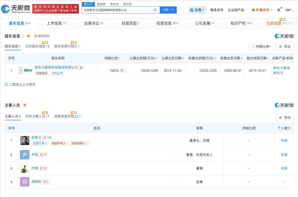 该公司成立于2005年3月,注册资本约1.2亿人民币,经营范围包括广播电视节目制作经营、网络文化经营、旅游业务、住宿服务等。股东信息显示,该公司现由新东方教育科技集团有限公司全资持股。