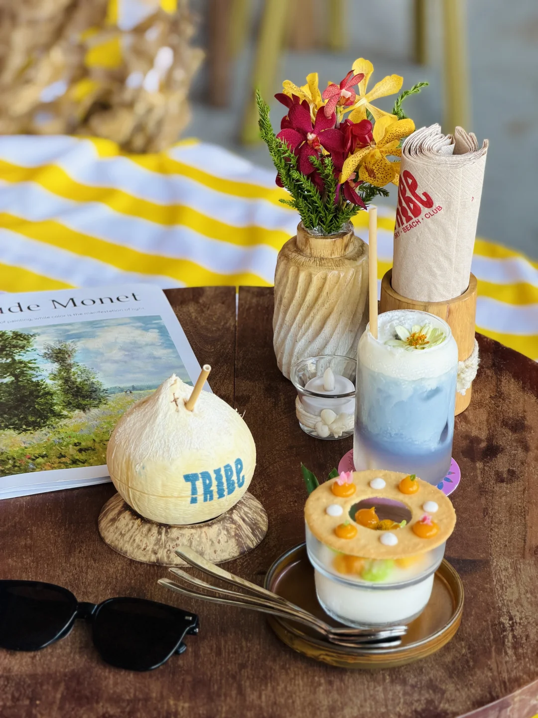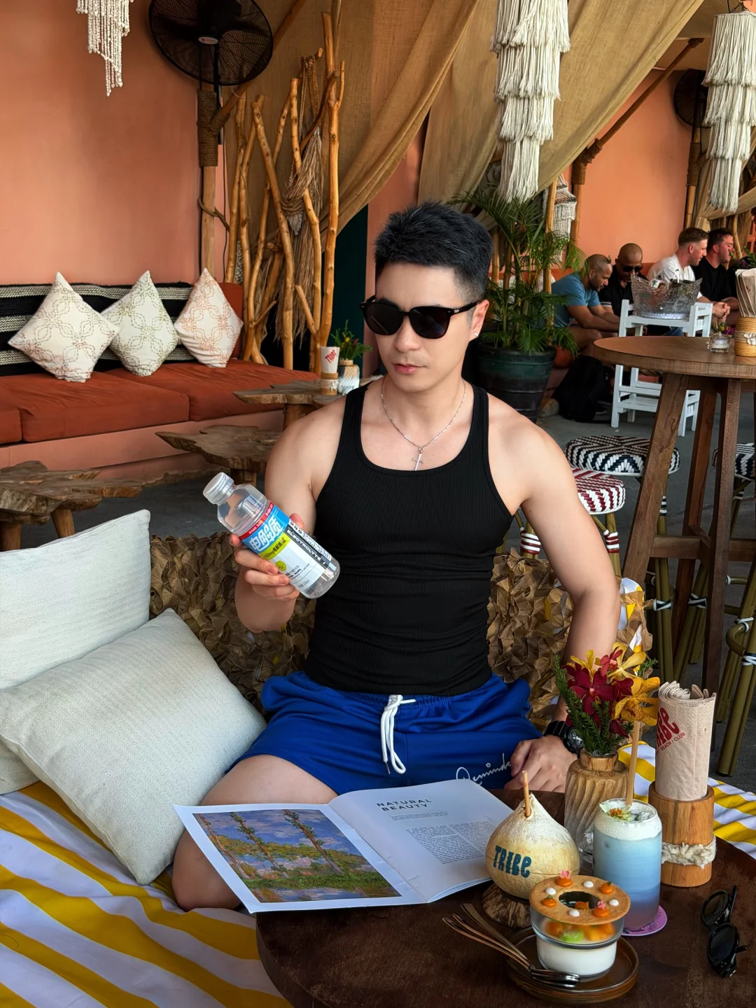 哈哈哈🤣我们3个朋友下午14:00去的,选到了个好位置,无低消的黄色躺椅区(尽量早点去或者🐟🈷️),点了2杯喝的和1个甜品(总共720泰🐖),东西其实都不贵,很划算!